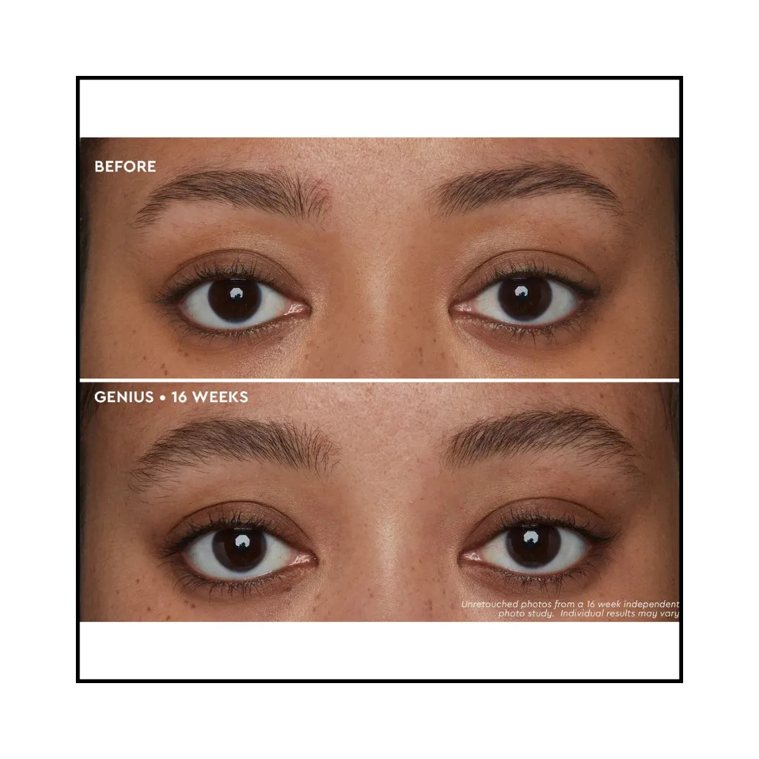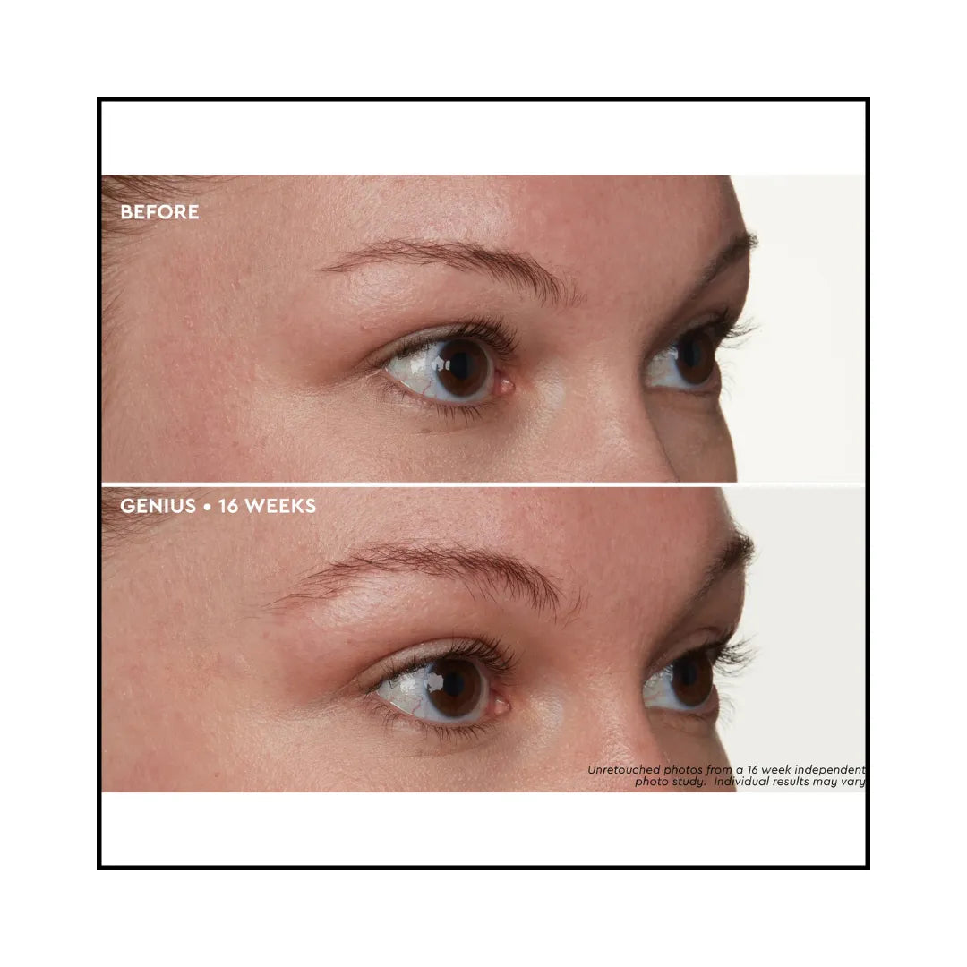 STEP 1: PREP Apply Brow Genius directly to clean brows, focusing on sparse areas. Use short, hair-like strokes starting at the root and working in the direction of hair growth. Allow the formula one to two minutes to dry before grooming and styling your brows. Apply every day in the morning and night for a minimum of 8 weeks for optimal results. Keep out of eyes. Discontinue use if irritation occurs.