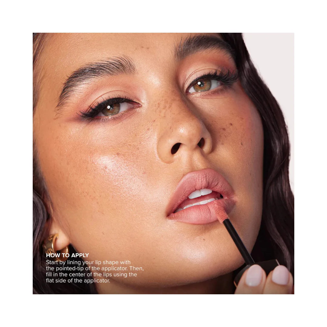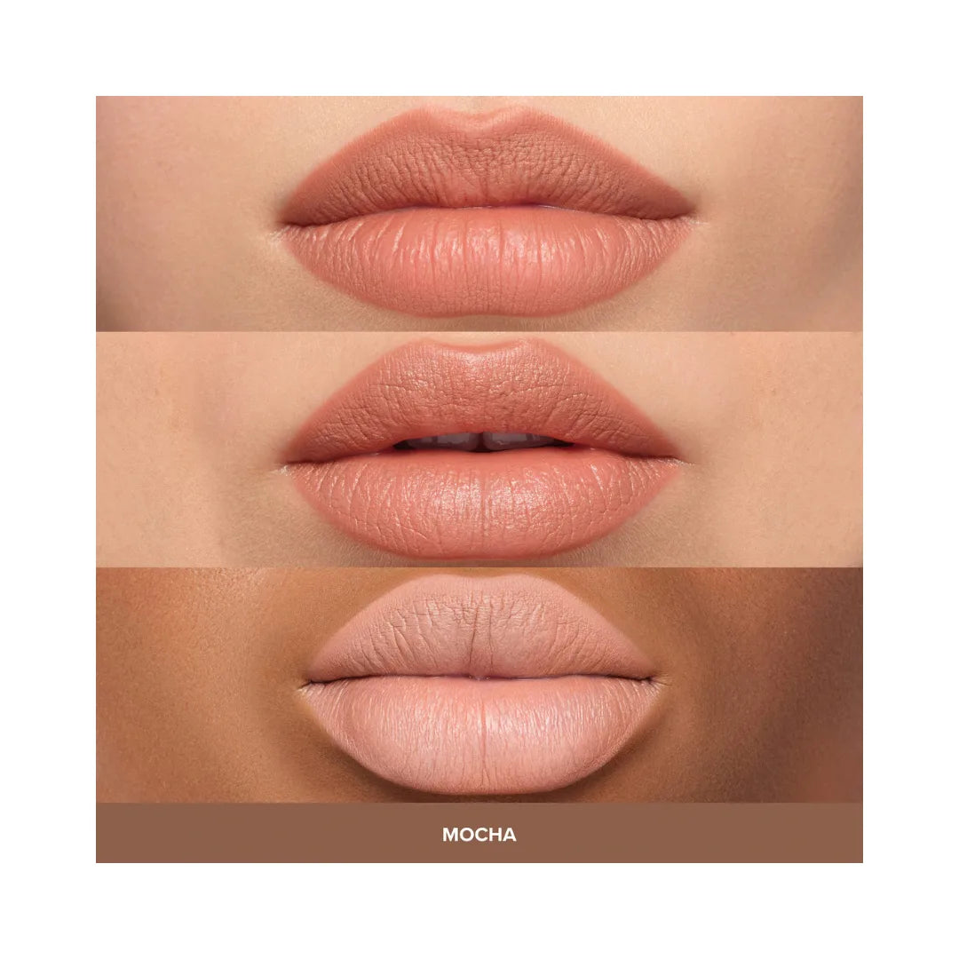 A velvet-smooth lip mousse with weightless, full pigment, true matte color, cushioned, comfortable wear, and a smoothing lip finish.