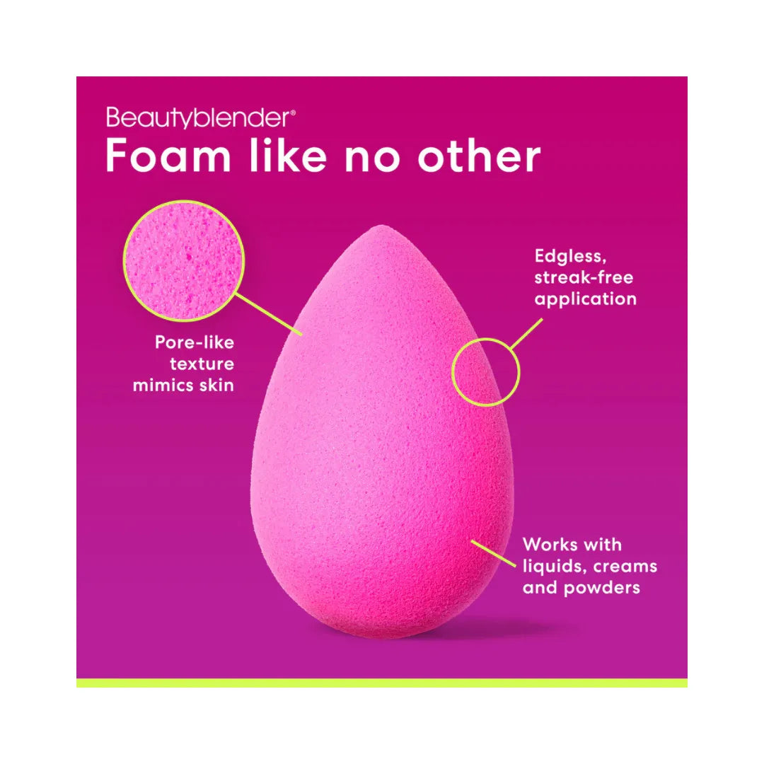 Take your routine, not your look, back to basics. The exclusive, ultra-plush beautyblender foam mimics pores to easily create a natural airbrushed finish. Then extend the lifetime of your tools by using the vegan conditioning cleanser to remove makeup, grime, and germs. beautyblender sets the standard for a clean, foaming process. No matter what color you choose, you are using a latex-free, medical-grade, edge-less sponge for an effortless application.