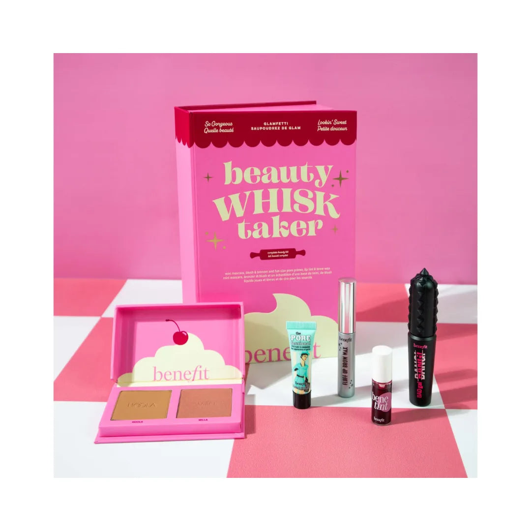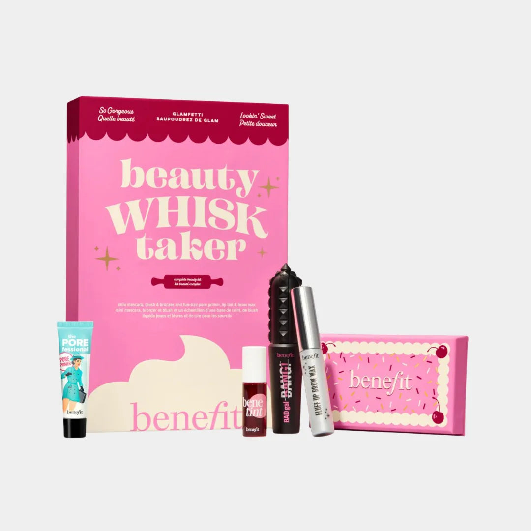 What it is: Whip up your makeup look with the help of the benefit Beauty Whisk Taker Palette for Brows Complexion Eyes and Lips. The ultimate beauty recipe this holiday season, the seven-piece gift set stars a mini Hoola bronzer, mini blush and mini BADgal BANG! mascara alongside deluxe sizes of primer, lip and cheek tint, brow wax and cleansing oil to complete your look.