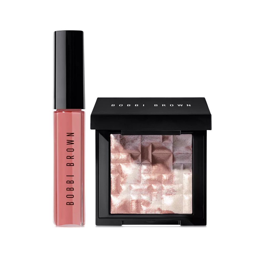 What it is: A set that creates light-catching looks with Crushed-Oil Infused Gloss and our bestselling Highlighting Powder, so you can glow wherever you go. The Crushed Oil-Infused Gloss glides on comfortable color and offers the shine of a gloss without the stickiness. Bobbi Brown bestselling Highlighting Powder glides over skin with a cushiony bounce that delivers a smooth, refined look and a lit-from-within glow.