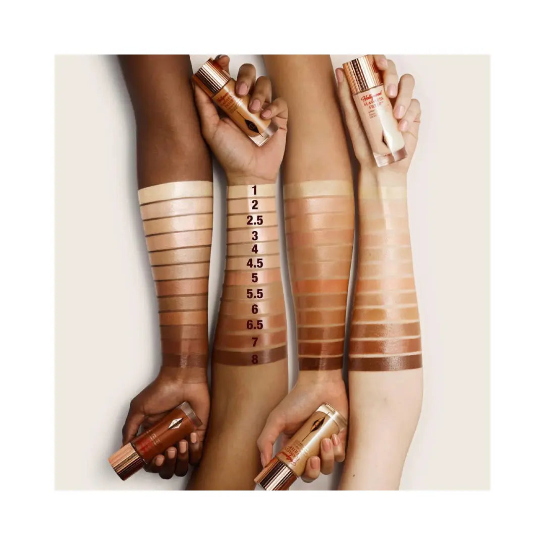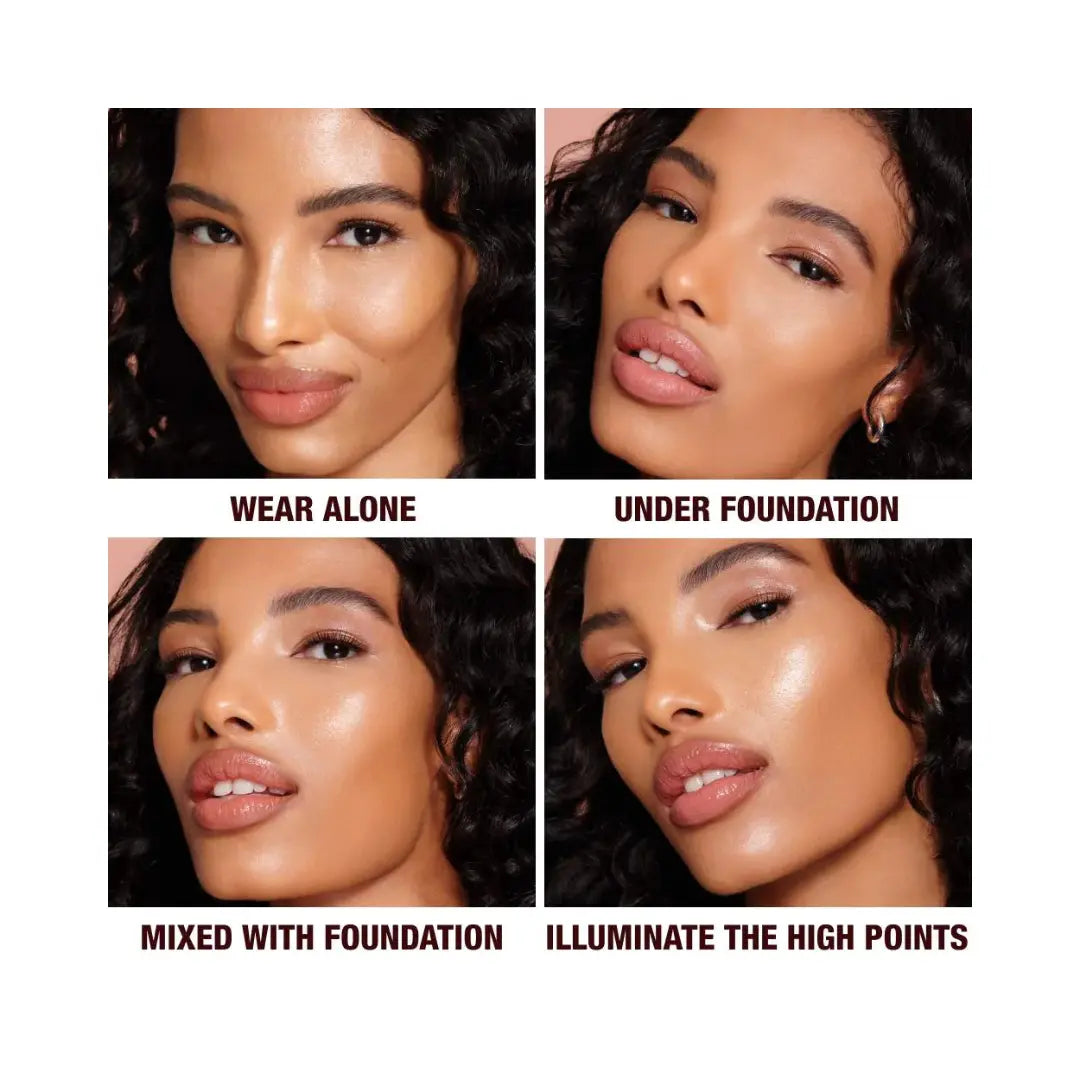 Inspired by social media filters, Charlotte created this to be a confidence glow filter. It can be used as a tinted primer, under foundation, mixed with foundation, or as a highlighter on high points of the face. The light-as-air formula moisturizes for up to 24 hours while smoothing and visibly brightening skin for a radiant finish.