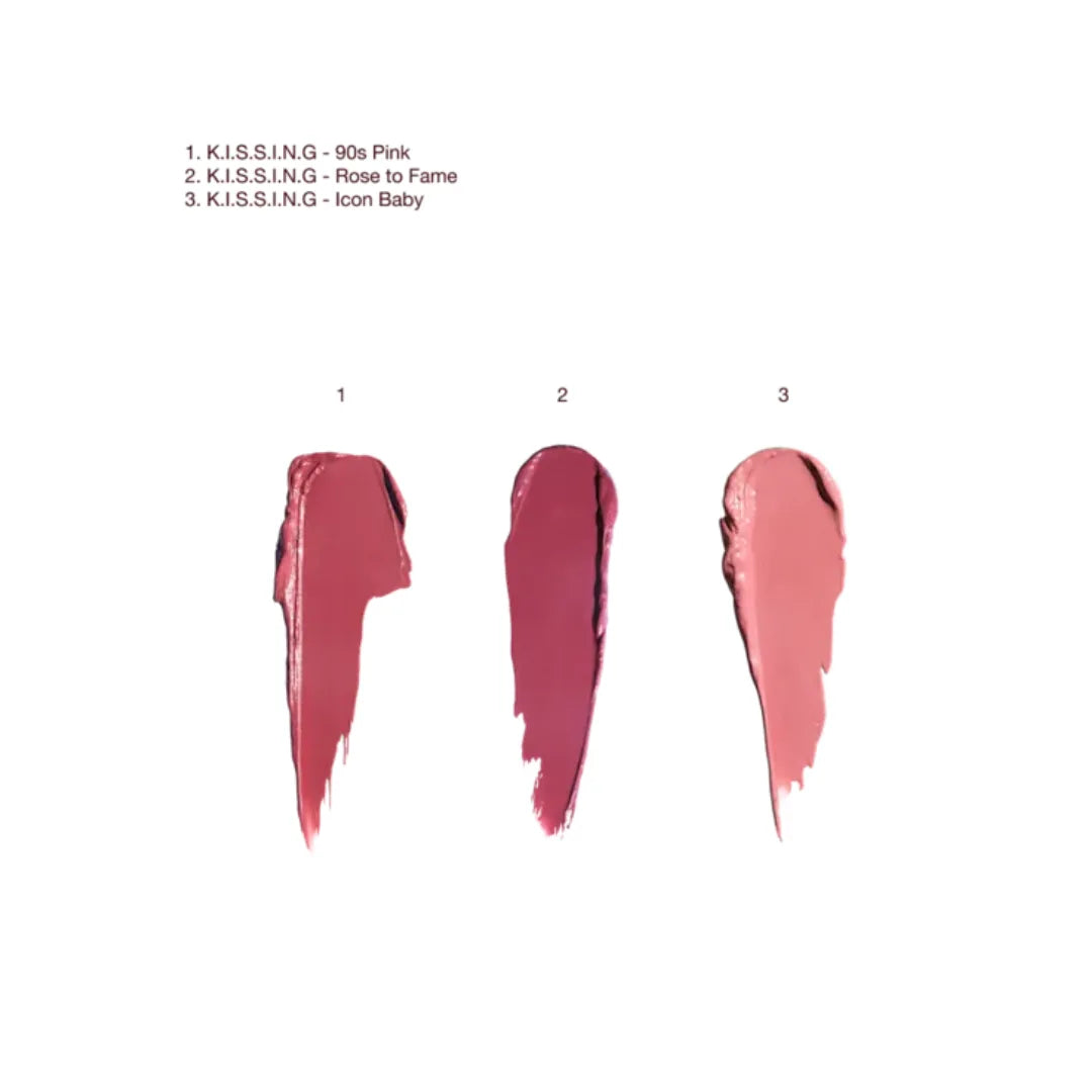 What it is: A set with three mini Hollywood Beauty Icon Lipstick charms in Rose to Fame, 90s Pink, and Icon Baby. This is a trio of super-flattering shades to reshape, resize, and iconize the look of your lips. 90s Pink is a dreamy, 90s-inspired warm rose pink. Icon Baby is a shimmering warm nude-rose. Rose to Fame is a soft mauve rose.