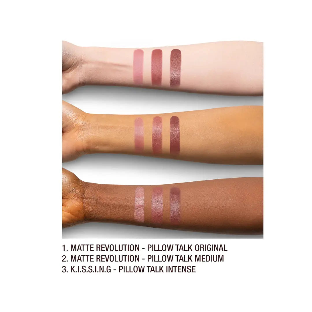 What it is: A mini lip set featuring Charlotte's iconic, bestselling Matte Revolution or K.I.S.S.I.N.G Lipstick with a Lip Cheat Lip Liner Pencil for a dreamy, nude-pink, kissable look.