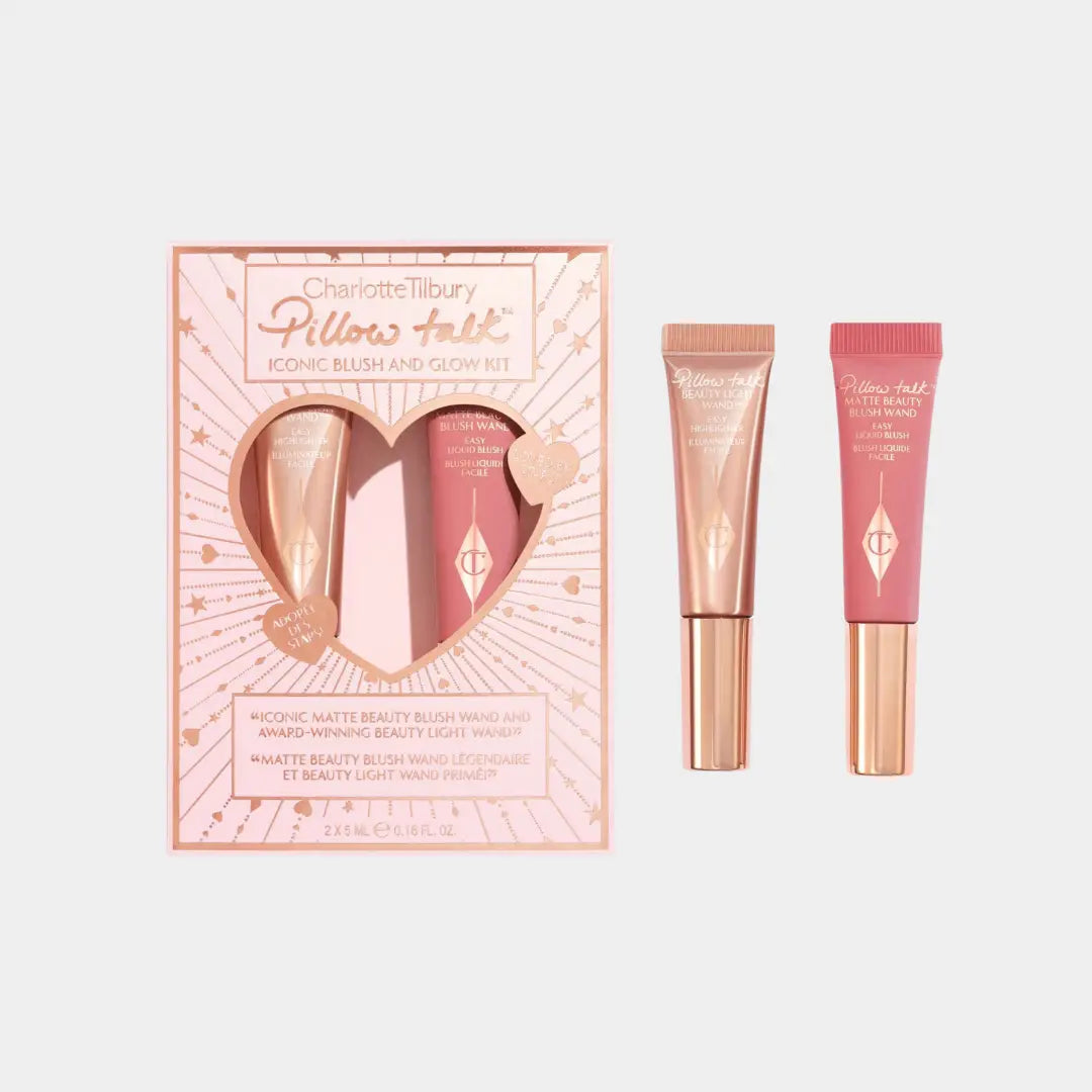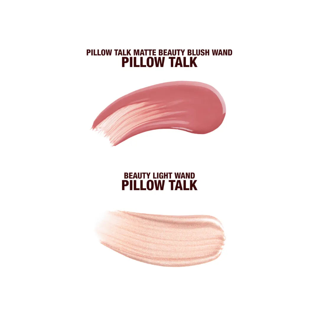 What it is: This limited-edition duo unlocks a dreamy Pillow Talk blush and glow. Charlotte Tilbury lifts the veil on dreamy rosy, radiant, pillow talk cheeks. Her Beauty Light Wands are enriched with Glow Gel Technology that blends seamlessly into the skin creating high shine highlights that stay dewy all day long. The Mini Beauty Light Wand in Pillow Talk is a nude pink liquid highlighter blush full of cheeky hopes, dreams and soft focus promises. While the Lumi Blur Technology in her Mini Matte Beauty Blush Wand in Pillow Talk delivers rosy red shades serving light catching radiance.