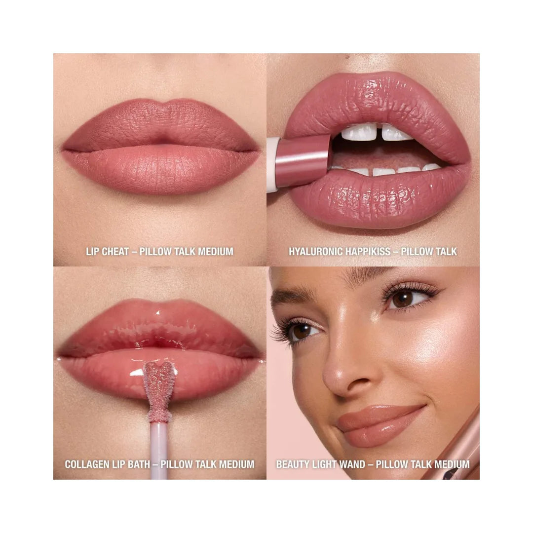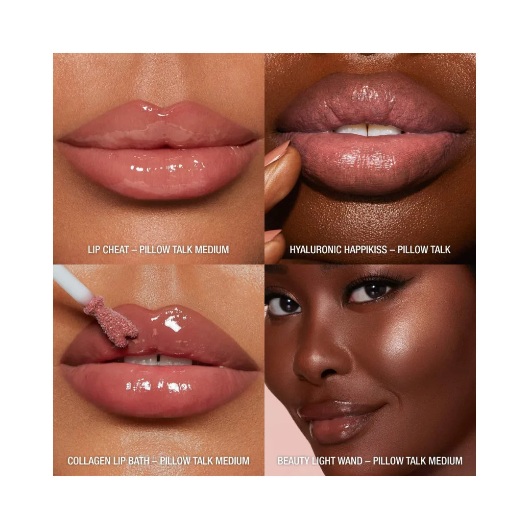 Meet Charlotte Tilbury’s award-winning, universally flattering phenomenon. Use the Lip Cheat Lip Liner to reshape and resize the look of your lips, Hyaluronic Happikiss Lipstick Balm for a high-shine finish with nourishing care, Collagen Lip Bath Gloss to smooth and plump for fuller-looking lips, and Pillow Talk Beauty Highlighter Wand for cheekbones that glow in every light.