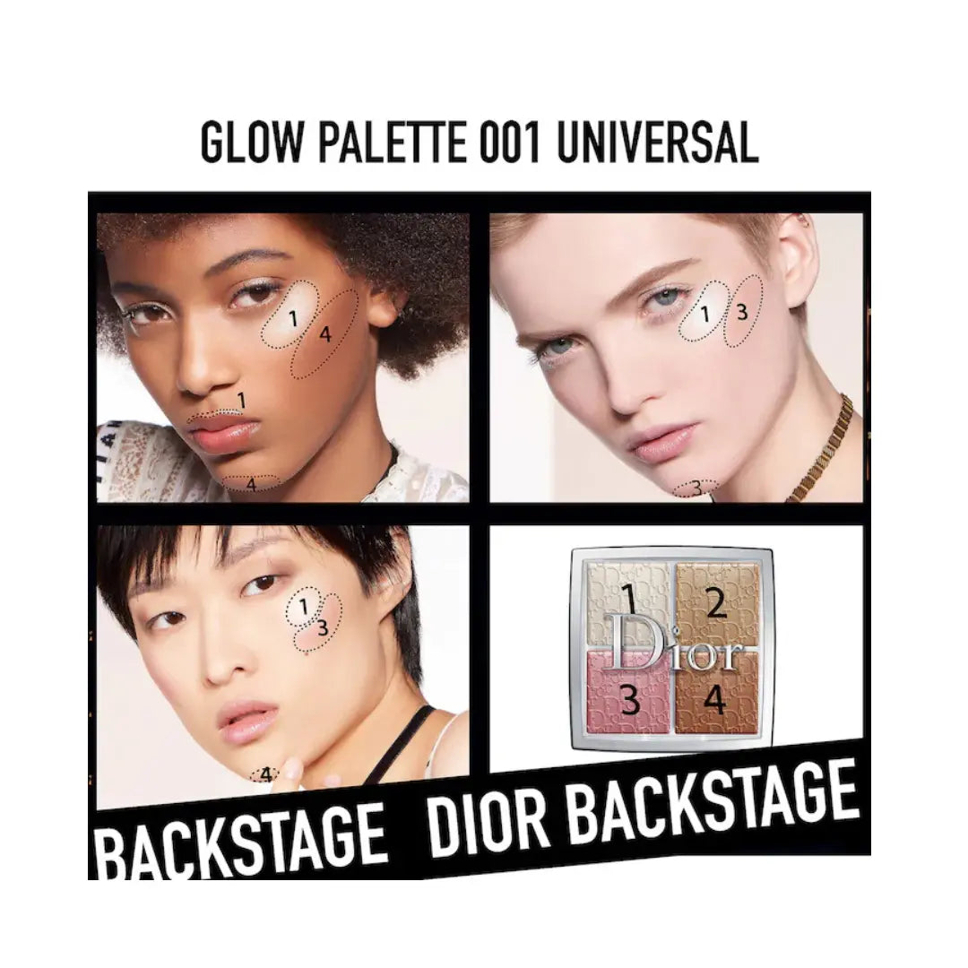This palette is a collection of makeup-artist essentials, designed to suit all skin tones, used at the Dior runway shows, and inspired by the energy backstage. These ultrafine textures are concentrated with shimmery pigments and can be worn alone or blended for a customizable look—from a natural, healthy glow to intense radiance.