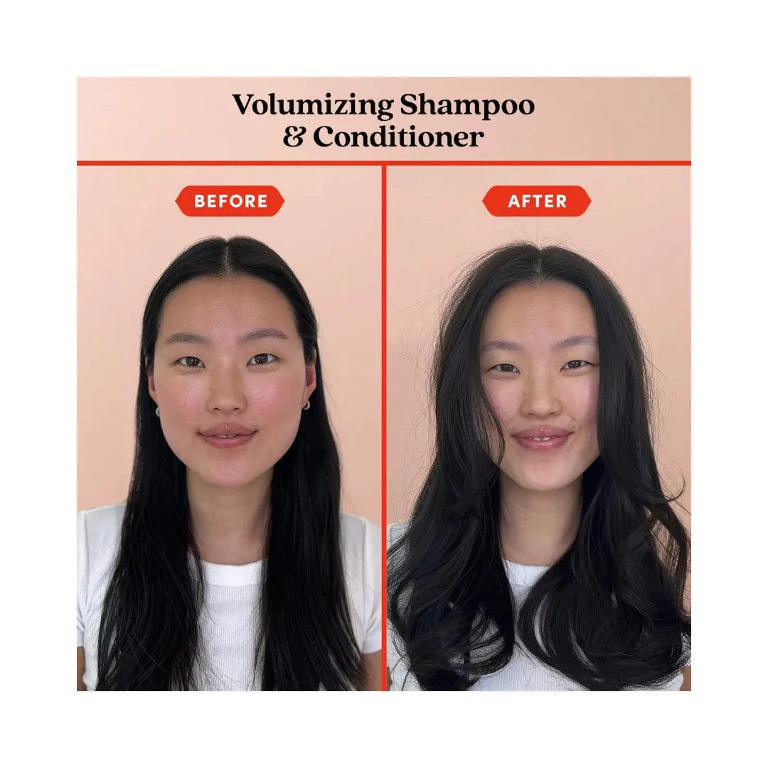 -Rinse well before cleansing with the Volumizing Shampoo and Conditioner.