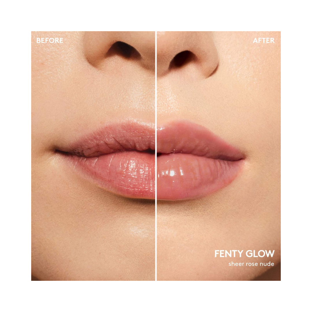 - Full Size Gloss Bomb Heat Universal Lip Luminizer + Plumper in Fenty Glow (sheer rose nude)