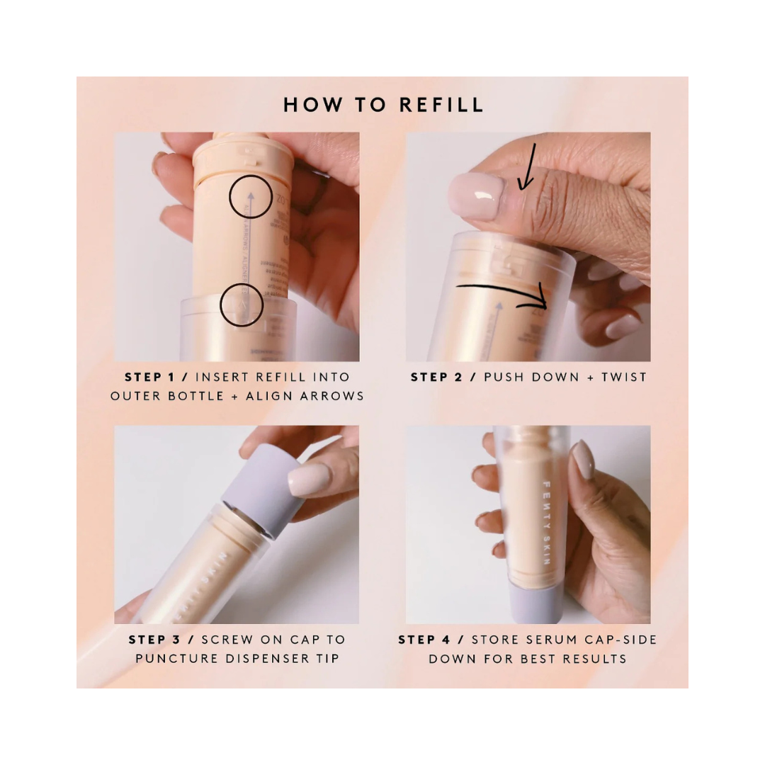 -To replace the refill, simply insert the refill into the outer bottle and align the arrows.