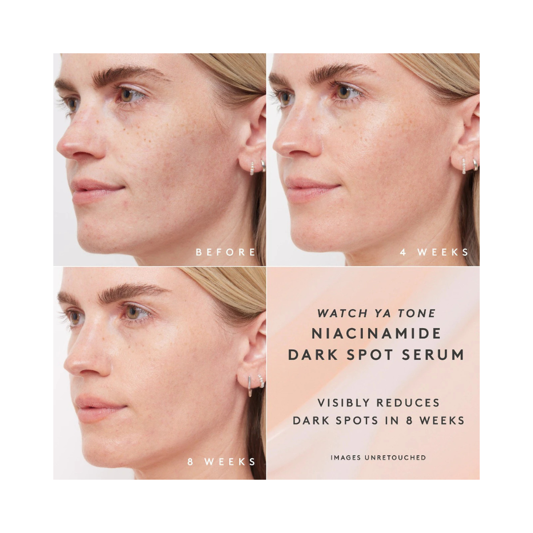 -Avoid AHA-based products on days when you use Watch Ya Tone 5% Niacinamide Dark Spot Serum.
