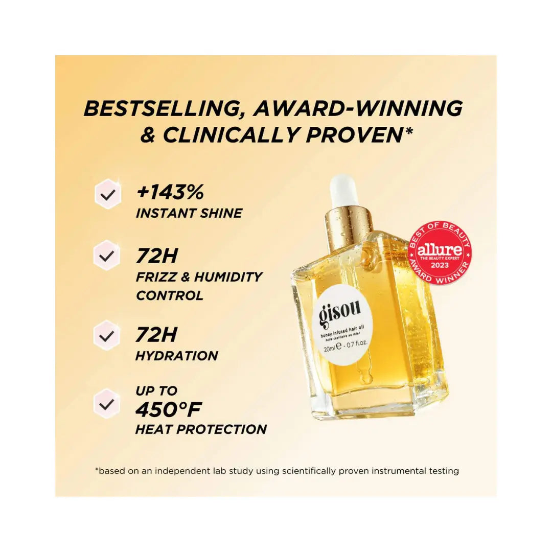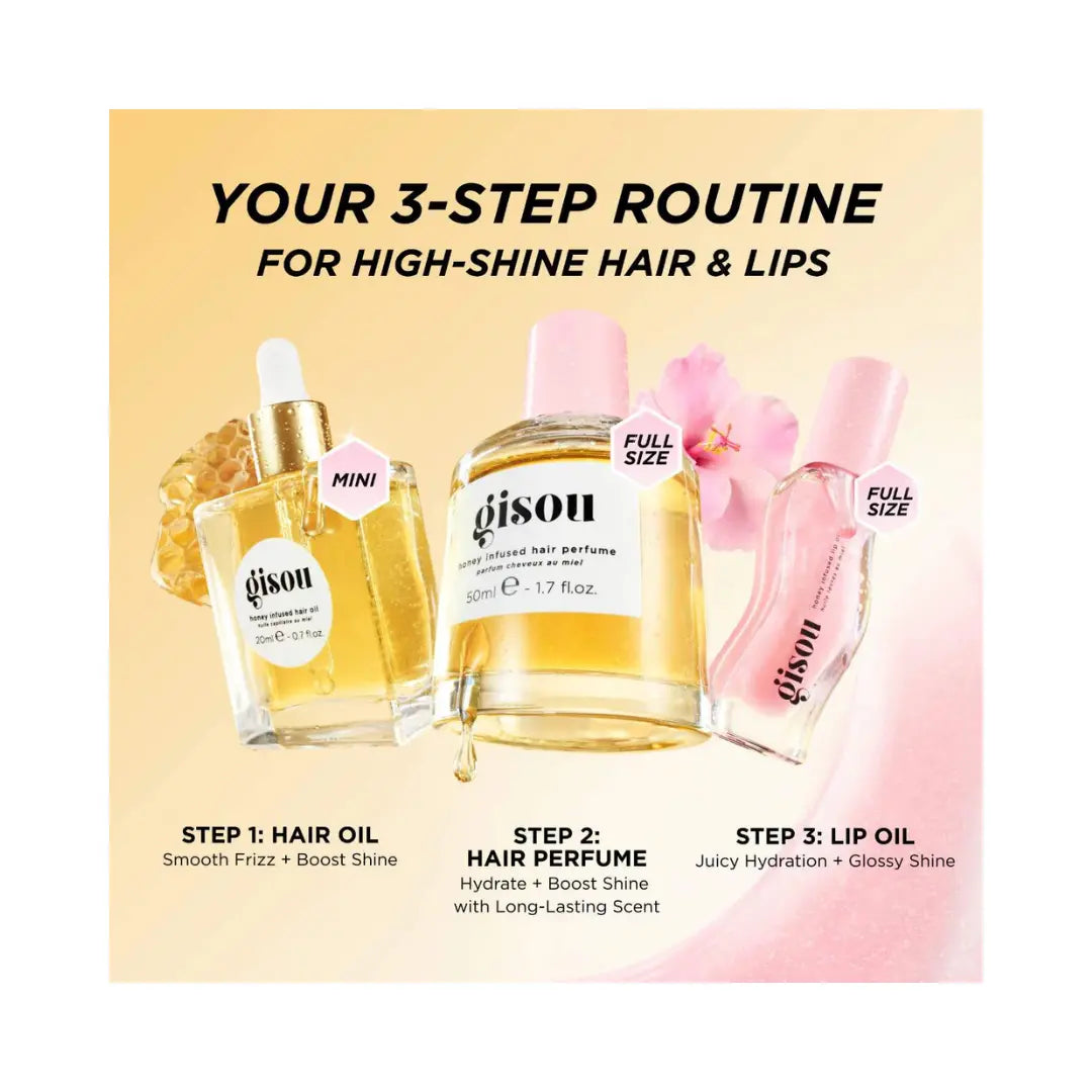 Discover this bestselling trio for smoother, shinier hair and lips. The award-winning Honey Infused Hair Oil boosts shine and smooths frizz while Honey Infused Lip Oil (Watermelon Sugar) drenches lips in juicy hydration. Finish with a spritz of Honey Infused Hair Perfume (Wildflower Honey) to add scent and shine.