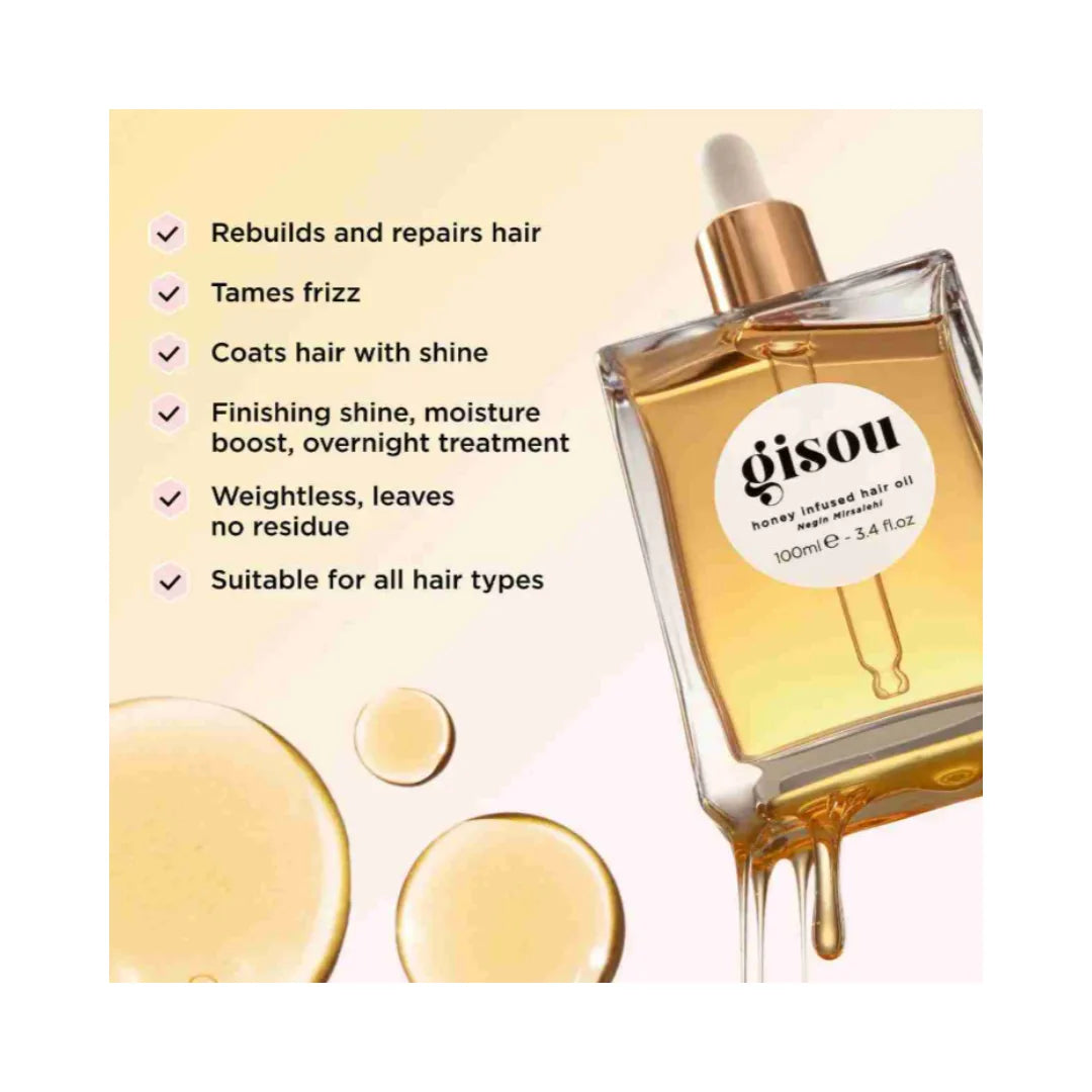 This bestselling & clinically proven hair oil is powered by Mirsalehi Honey - a powerful natural humectant sustainably sourced from Gisou's own Bee Garden - to intensely hydrate, instantly boost shine & smooth frizz, along with a Bee Garden Oil Blend that deeply nourishes for glossy hair.