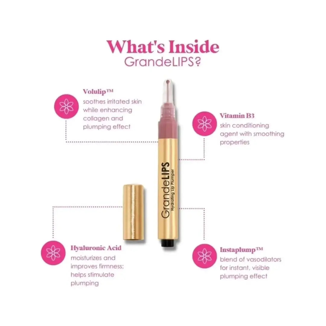 These high gloss, volumizing lip plumpers are infused with a nourishing cocktail of Volulip™ and hyaluronic acid for instant and long-term hydrating benefits. They instantly improve lip volume in 3-5 minutes and hydrate dry areas. Plus, when used 2x daily for 30 days, see an increase in overall lip volume. GrandeLIPS’ unique cushion applicator easily wipes clean & combines effortlessly with other lip products.