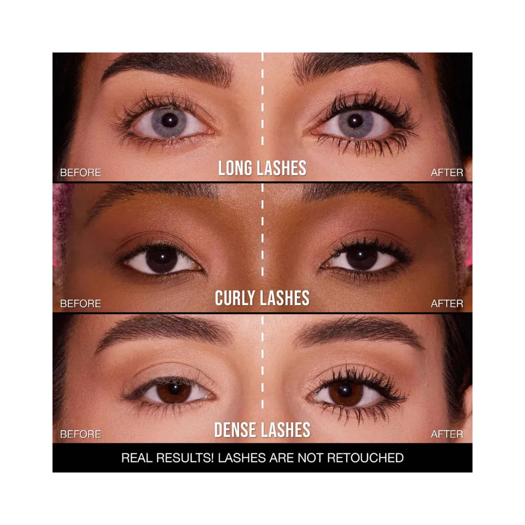 The ultra-black and creamy formula means just one dip of mascara coats every lash for easy volumized, lifted, and longer lashes. The dual shaped brush has short and long bristles to lengthen and separate lashes. The curved, concave side provides instant volume while the convex side defines lashes.