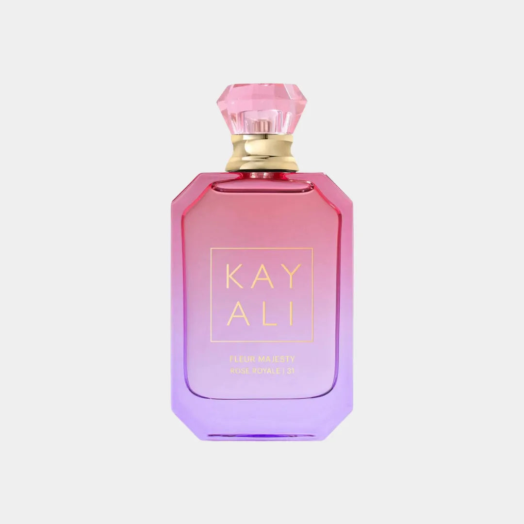 About the Bottle: KAYALI’s Fleur Majesty Rose Royale | 31 reveals a stunning, new glass bottle, showcasing a delicate yet rich gradient that transitions from dazzling pink to royal purple for the first time. KAYALI’s signature diamond-shaped bottles and opulent jeweled caps are inspired by traditional Middle Eastern oud bottles. The number 31 indicates the number of rounds of formulations it took to achieve the perfect juice.