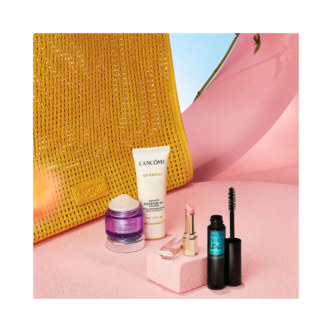What it is: Lancôme's limited-edition five-piece Summer Collection Gift Set will help keep you protected and gorgeous for any summer day. It features two of their best-selling SPF products: UV Expert and Rénergie H.P.N. 300-Peptide Cream. It also includes a full-size waterproof Monsieur Big voluminous mascara and a mini Lip Idôle Butterglow! You can carry all of this (and more!) in the super spacious, collectible yellow tote bag. Whether you're sunning in Saint-Tropez or delighting in the Domaine de la Rose, Lancôme has everything you need for your perfect summer. À bientôt!