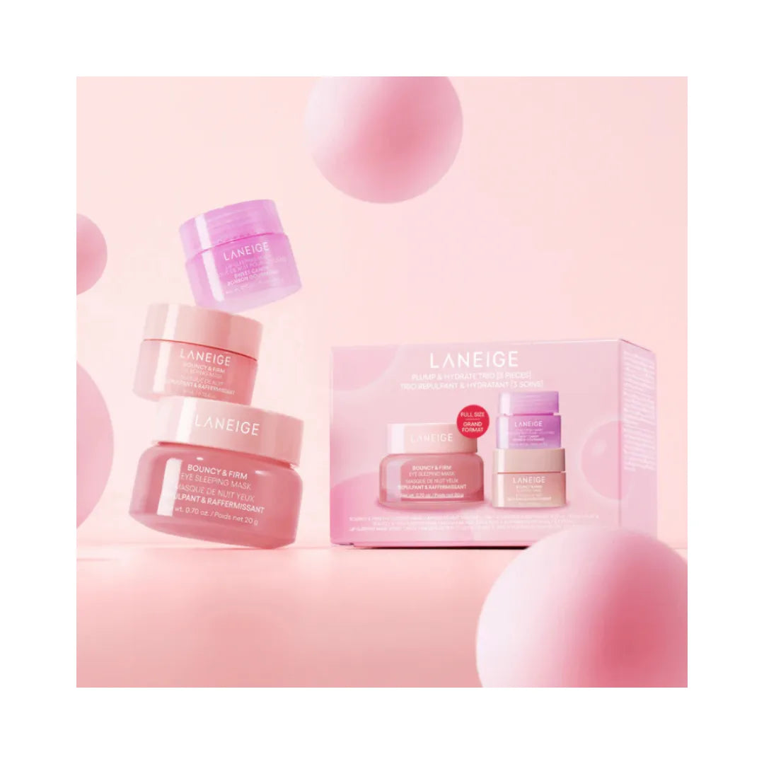 Powered by hyaluronic acid and shea butter, each of these iconic formulas are here to add a dewy touch to your daily routines. The Bouncy and Firm Eye Sleeping Mask works to deliver plumper, firmer-looking skin, while the Lip Sleeping Mask offers deep hydration to parched pouts. What's Give the gift of radiance with this must-have trio set to rejuvenate duller complexions.