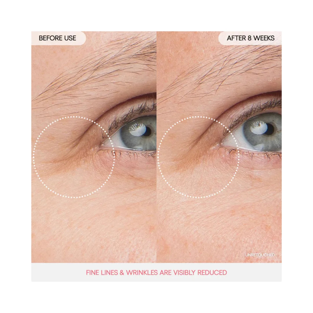 - Gently pat a light layer of the mask on top of hydrated skin around the eye area.