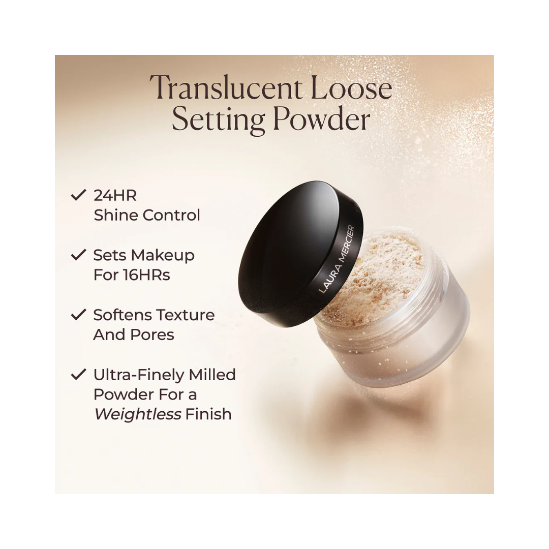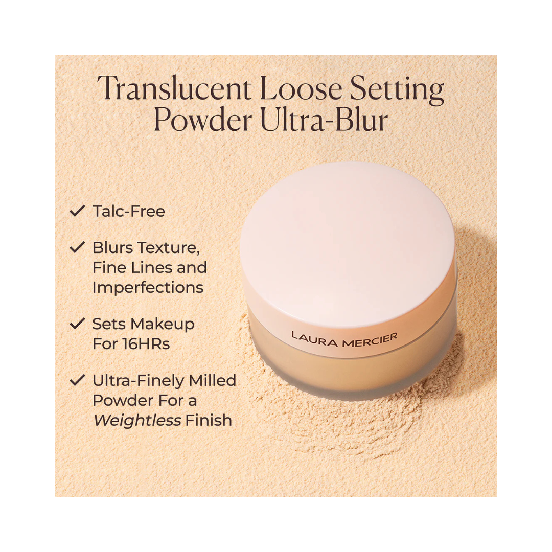 The cult-favorite Translucent Loose Setting Powder, talc-free with ultra-blurring power. For the first time, Laura is making her iconic powder free from talc, without any sacrificing any benefits.! This truly translucent powder sets makeup for 16 hours of weightless wear with an ultra-blurring, natural finish.