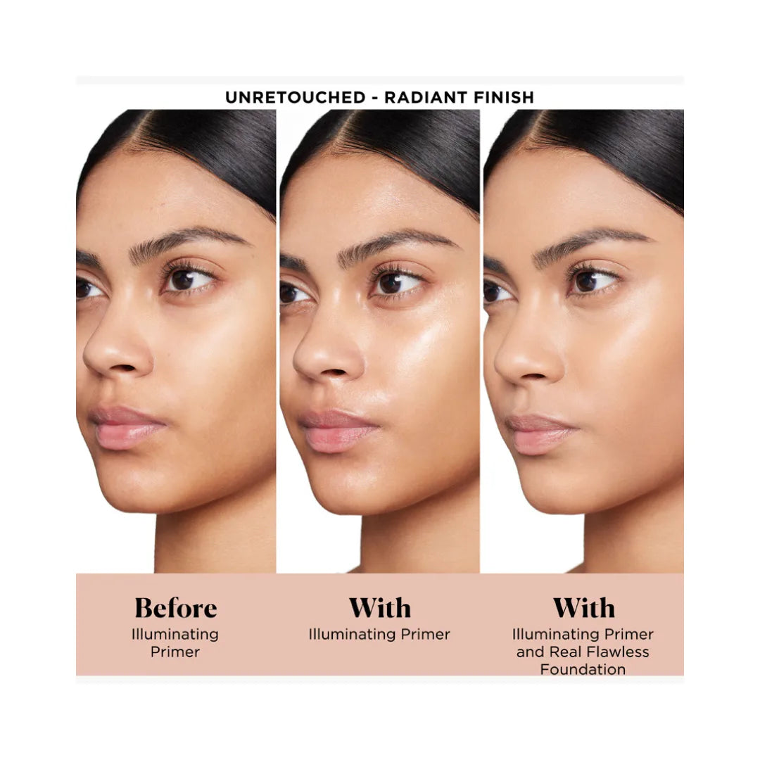 Apply the Illuminating Primer after your skincare routine. Squeeze a dime-sized amount onto your fingertips and gently massage it all over your face. Follow with Tinted Moisturizer or Foundation.