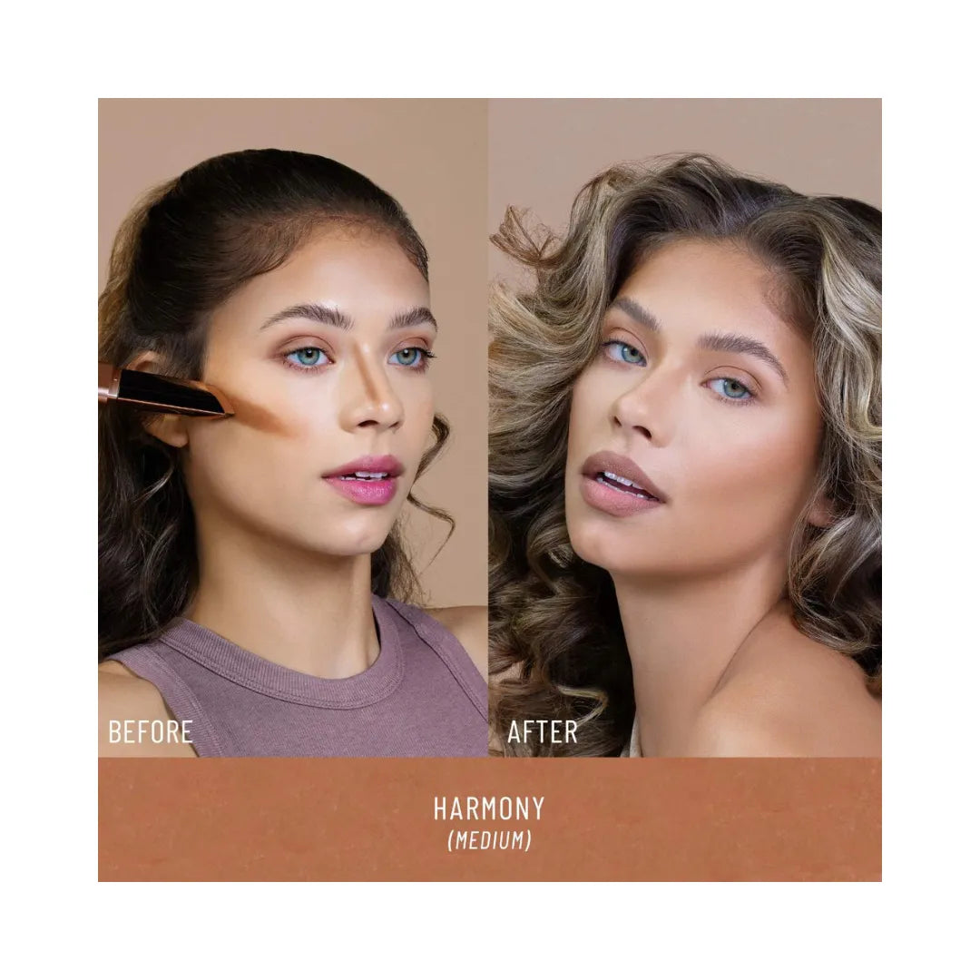 -For immediate warmth, gently blend product into the hallows of the cheek, temples of the forehead, and jawline using a brush or sponge.