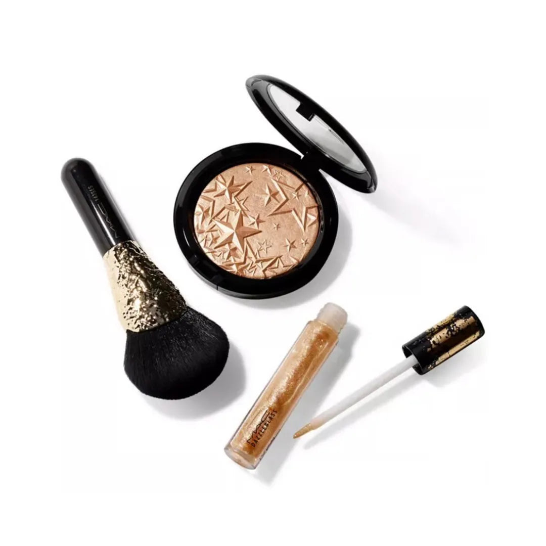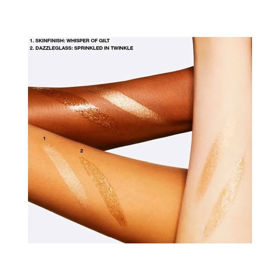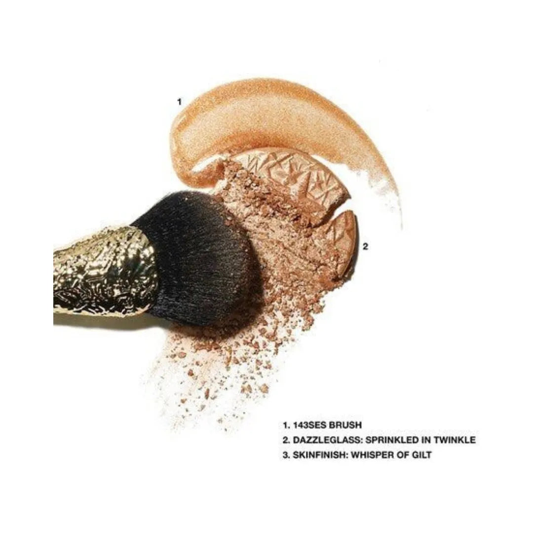 What it is: Find your spotlight with special-deco sparkling Dazzleglass and star-embossed metallic Extra Dimension Skinfinish in pink or gold shades, paired with an all-new 143SES Medium Face Fan Brush with texturized metal ferrule. Each set is housed in a special-feature sparkly pouch with a star-accented zipper for full-on cinematic impact. Dazzleglass has a comfortable formula that helps instantly hydrate and condition with a light-reflective shine.