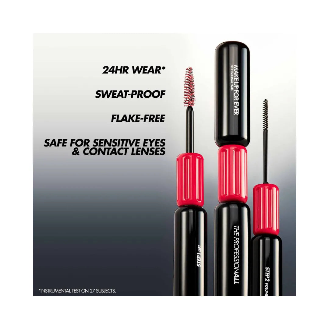 Then, use our Mascara The Professional, a universal mascara, for all lashes, with 2 simple steps.