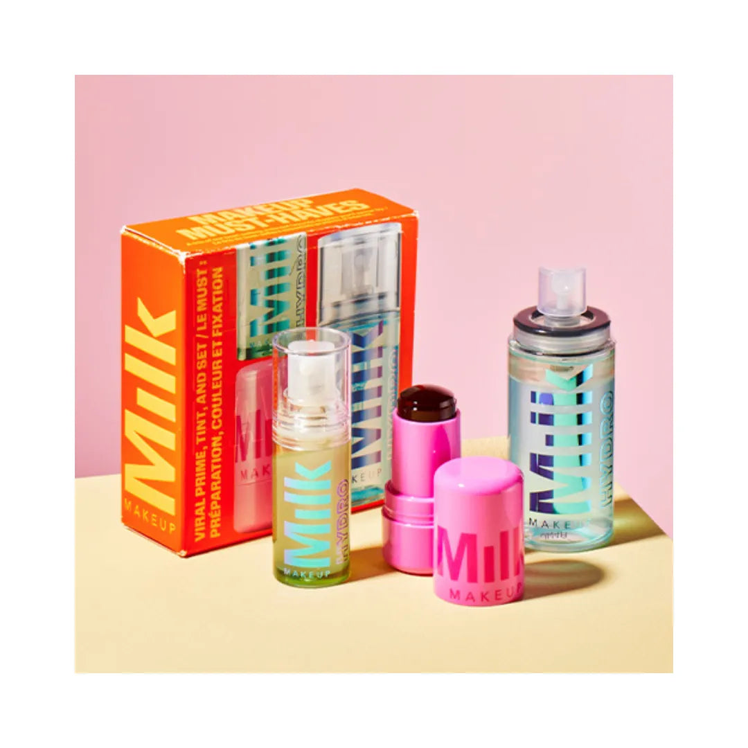 What it is: A trio of our best-selling, internet-favorite staples you’ll swear by—bundled together for a seriously good deal. This makeup set packed with Milk icons features our 13x award-winning face primer, viral jelly blush + lip stain, and everyone’s fave hydrating setting spray.