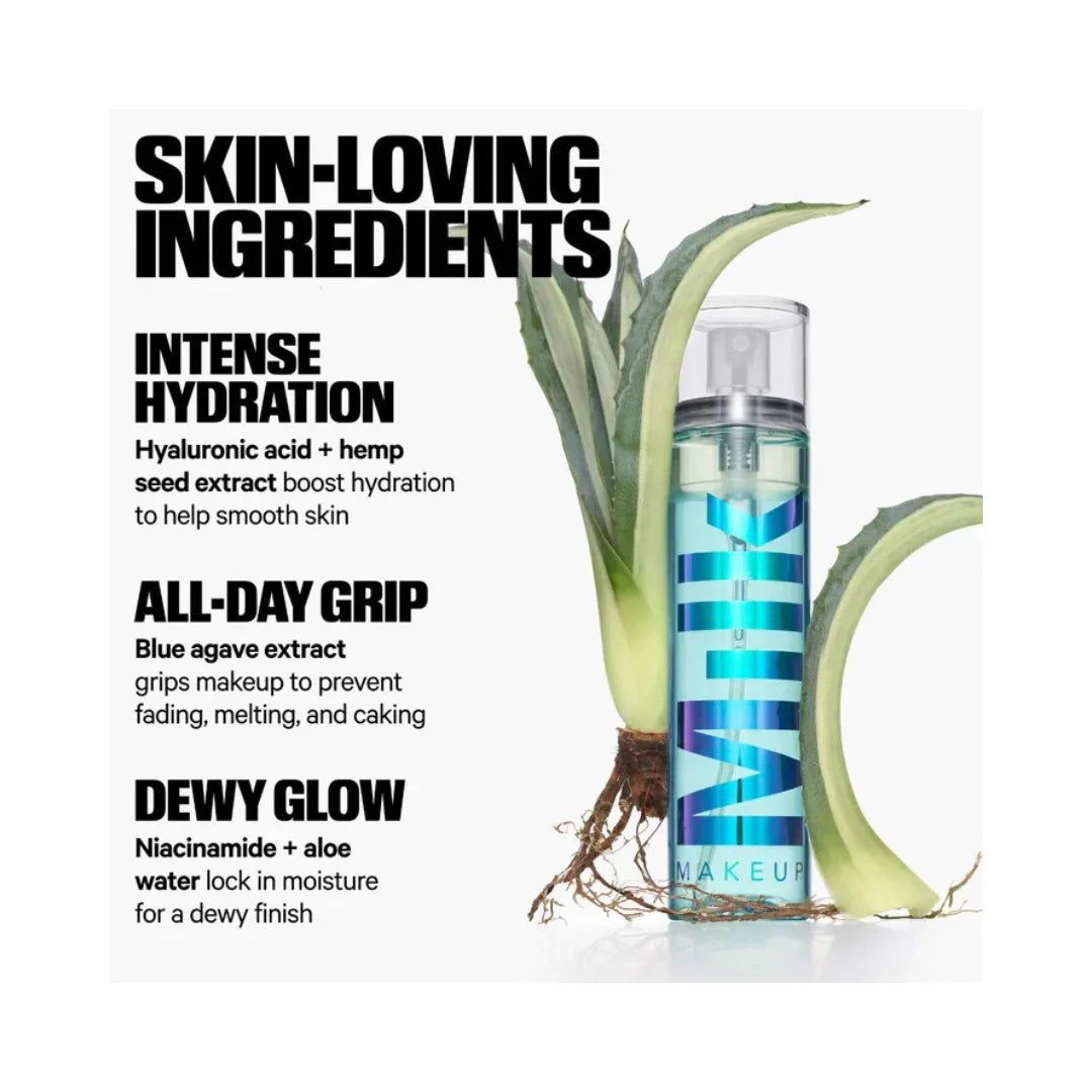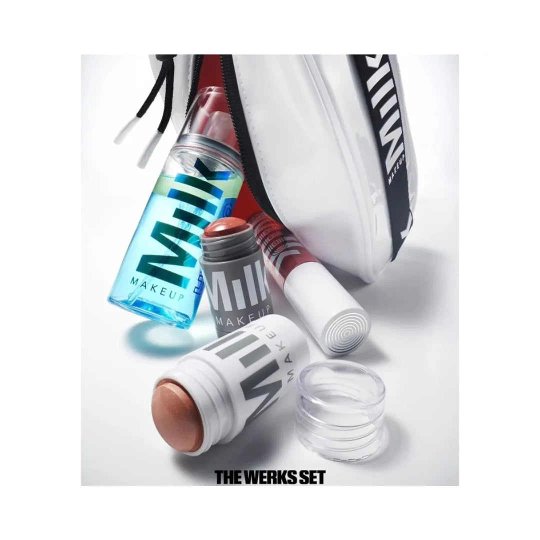 This limited-edition bag set features Milk Makeup's bestselling rosy shades that look good with everything. The Lip + Cheek is a creamy formula blends smooth for a natural pop of color. The Odyssey Lip Oil Gloss is for serious shine. The non-sticky formula is packed with nourishing ingredients, so your lips look soft and hydrated. The Highlighter can be applied to the high points of your face for an instant glow. The Hydro Grip Set + Refresh Spray will set your look for up to 12 hours and refresh makeup throughout the day.