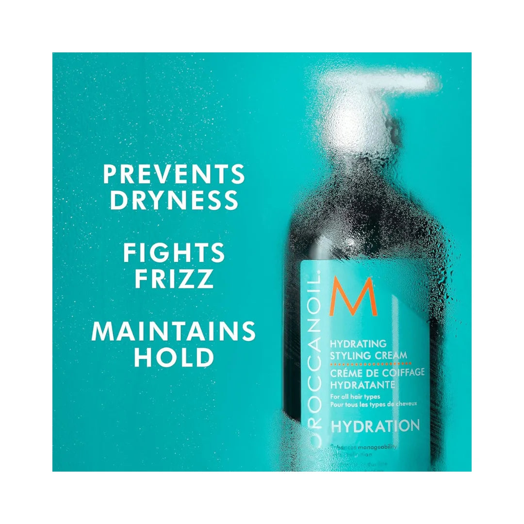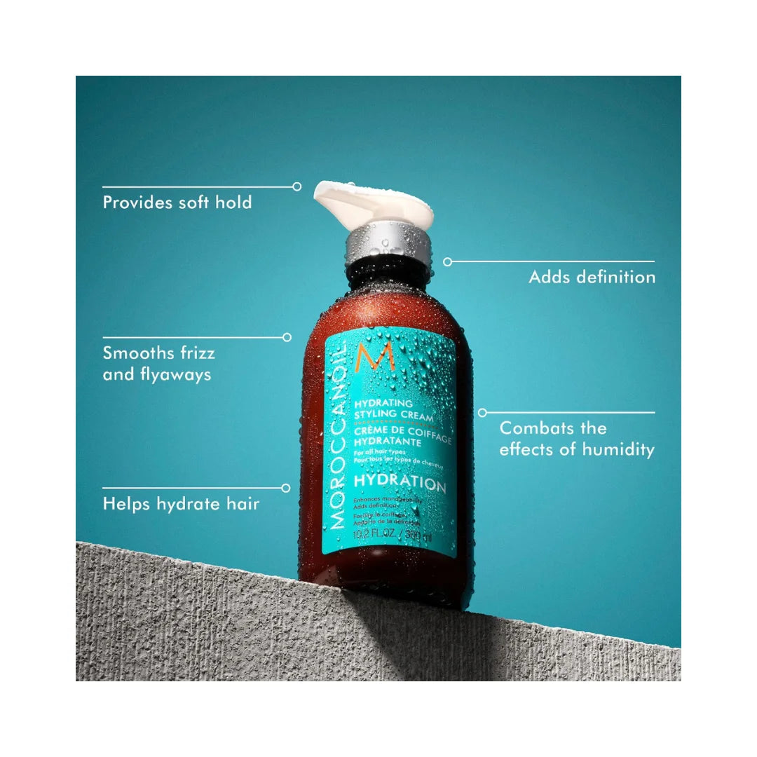 Hydrating Styling Cream: For best results, after shampooing and conditioning, apply 1–2 pumps of Hydrating Styling Cream with a few drops of Moroccanoil Treatment to damp hair and style as usual or allow hair to dry naturally. For daily use, a pea-sized amount on dry hair fights frizz and can also be combined with a small amount of Moroccanoil Treatment to refresh style.