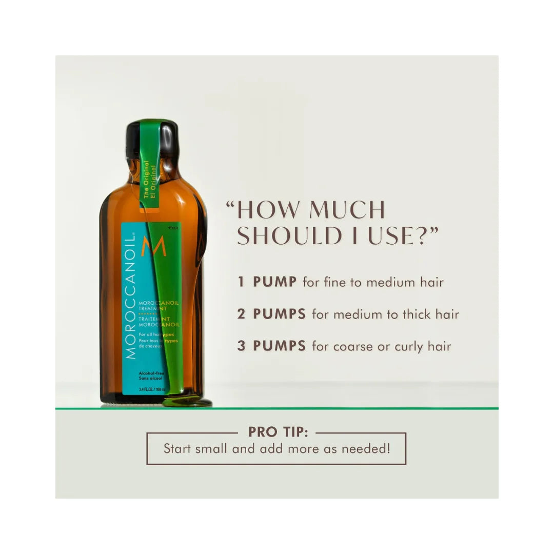 Treatment Hair Oil: Apply a small amount to clean, towel-dried hair, from mid-lengths to ends. Blow-dry or let dry naturally than apply on dry hair to tame flyaways, condition split ends, and smooth hair.