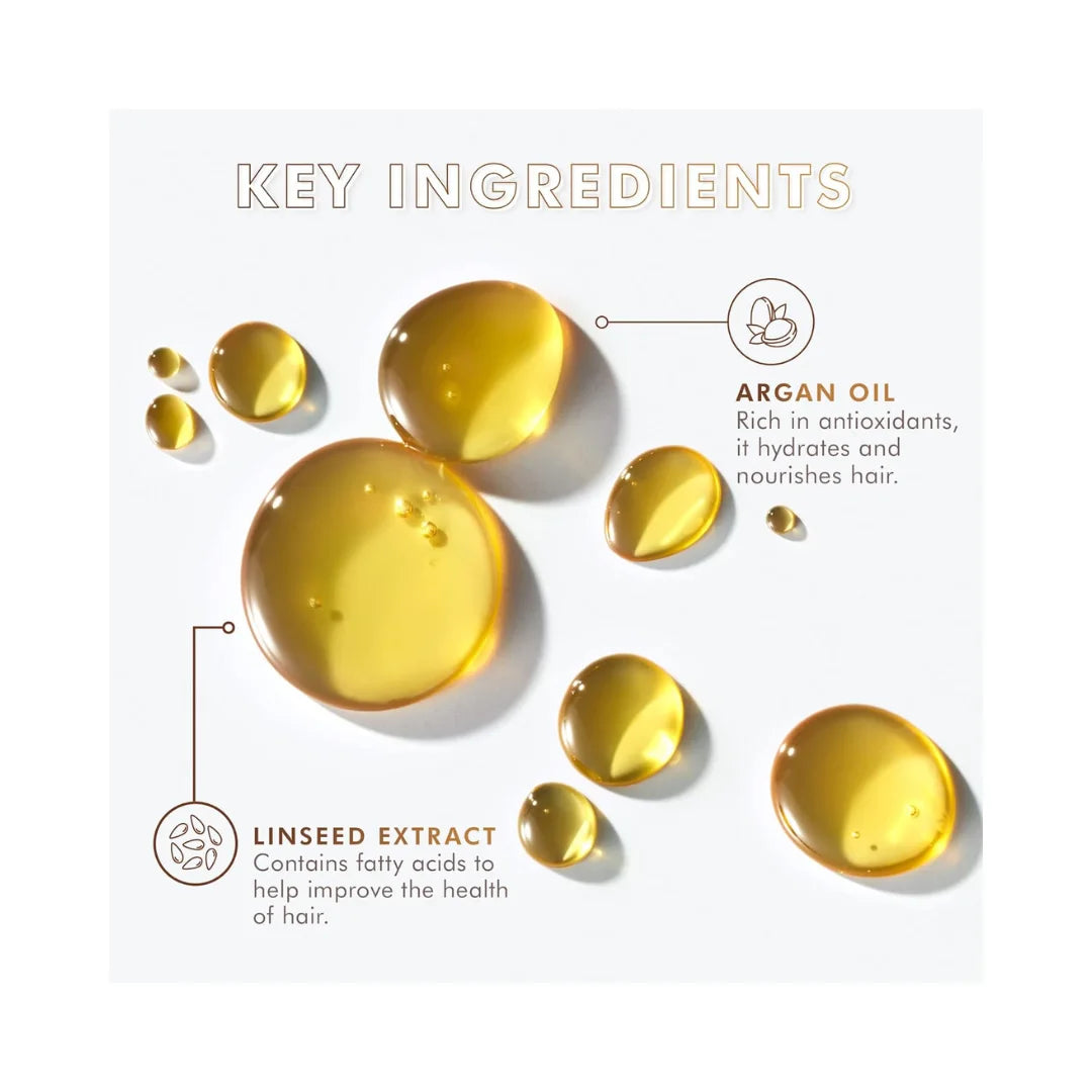 Water, Dimethicone, Cetearyl Alcohol, Fragrance, Argania Spinosa (Argan) Kernel Oil, Behentrimonium Chloride, Phenoxyethanol, Glyceryl Stearate Se, Caprylyl Glycol, Isopropyl Alcohol, Chlorphenesin, Citric Acid, CI 15985 (Yellow 6), Eugenol, Butylphenyl Methylpropional, Hydroxyisohexyl 3-Cyclohexene Carboxaldehyde, Linalool, Alpha-Isomethyl Ionone.