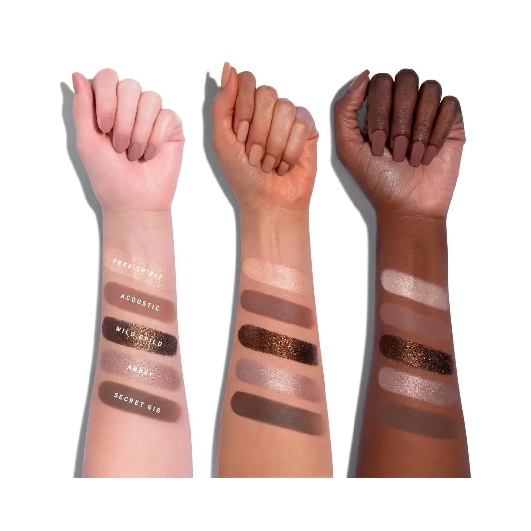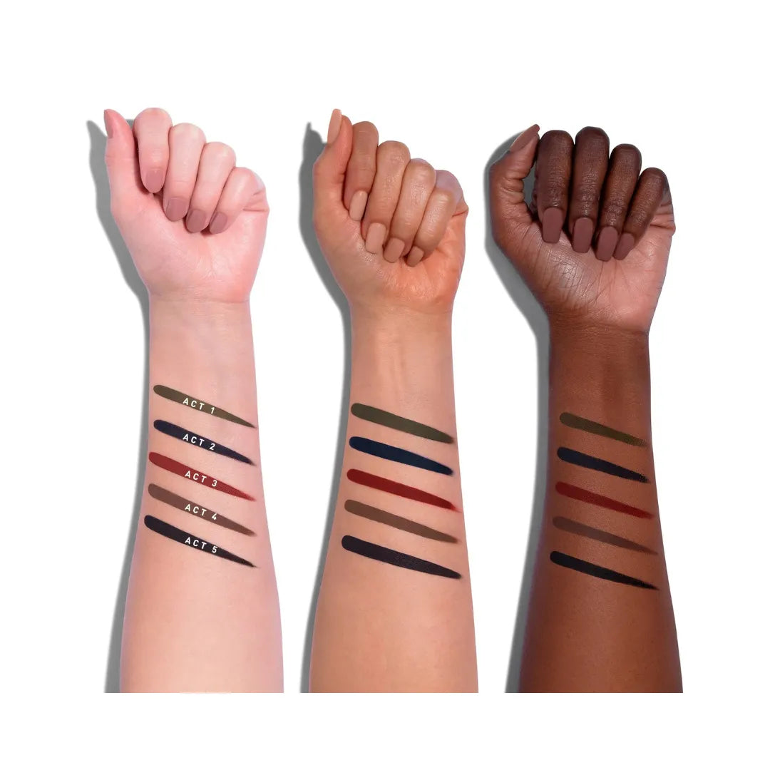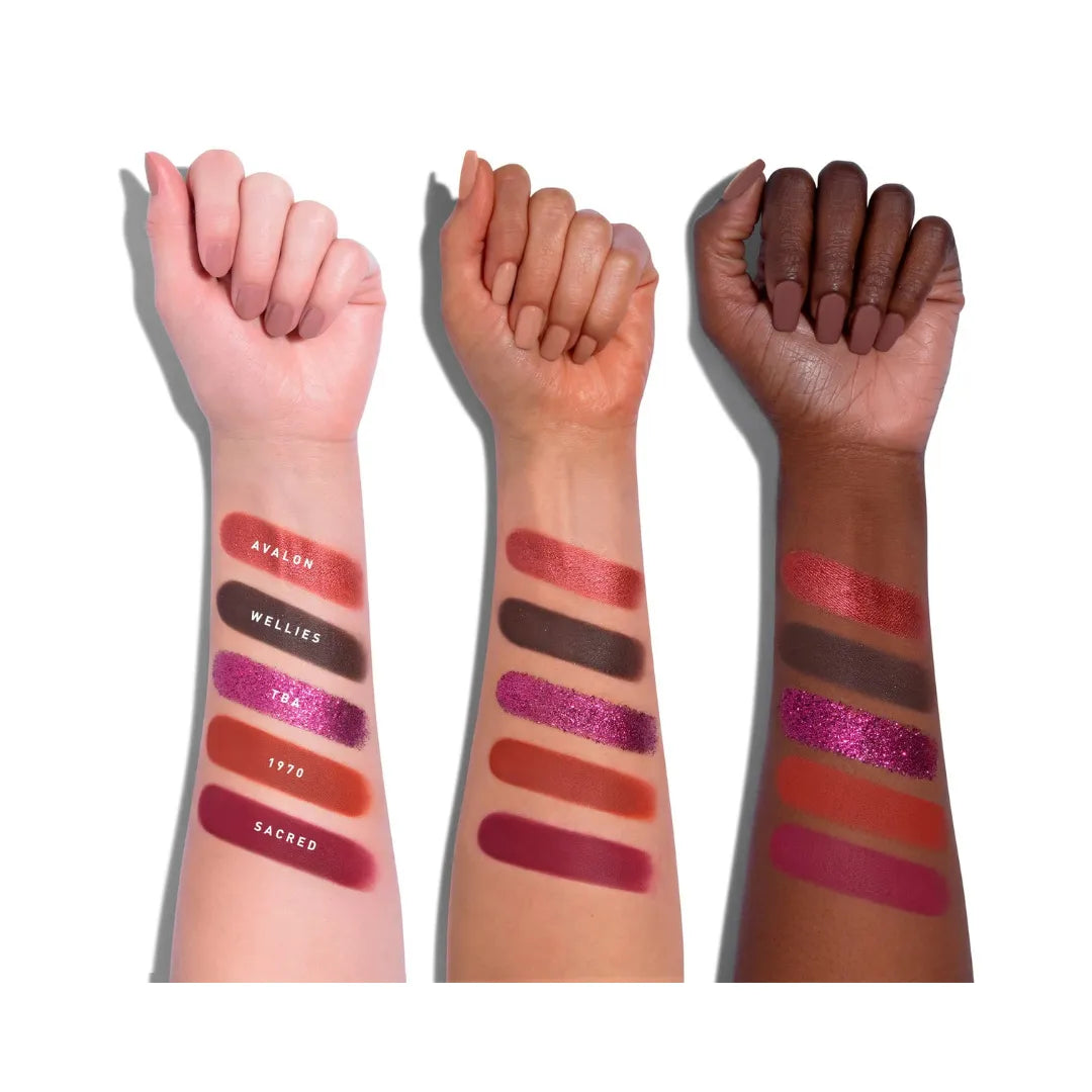 What it is: Leave ‘em awestruck with this palette of edgy, earthy shades, silk slip toppers, and showstopping glitters. Plus, our headlining act of water-activated liners make a debut. Swipe ‘em on with a wet brush for bold effects.