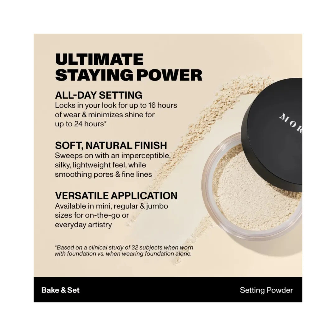 What it is: Brighten and set makeup for up to 16 hours of wear and minimize shine for up to 24 hours with Morphe Totally Set Mini Brighten & Set Powder Duo. This pairing of mini, lightweight, talc-free, finely milled, silky loose Bake & Set Setting Powders sweeps on with an imperceptible, soft, natural finish, while smoothing pores and fine lines. Apply Brightening Pink under the eyes and Translucent over the complexion for complete artistry that lasts.