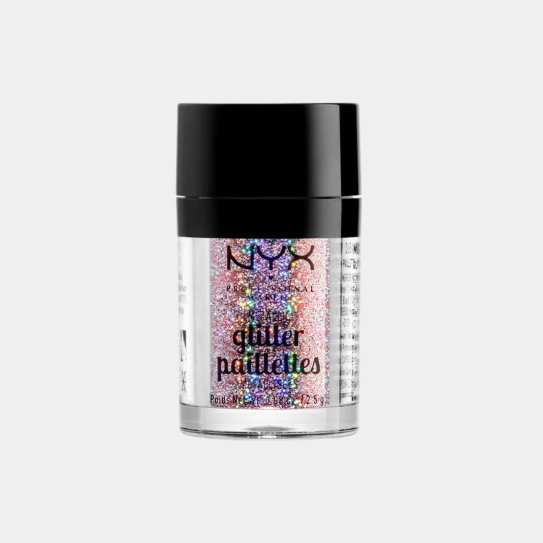 What it is: Serve up sparkling heavy metal realness with NYX Professional Makeup Metallic Glitter. These loose glitters are available in ultra-reflective metallic shades - ranging from deep bronze to holographic pink and sandy gold - that’ll make your face and body art truly shine. Prep with our Glitter Primer to keep’ em in line.