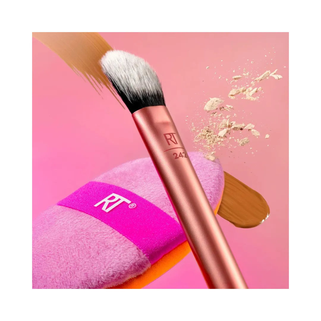 -RT 242 Kitten Paw Concealer Brush: Unique shaped bristles provide high-coverage to conceal undereyes for a brighter, lifted finish.