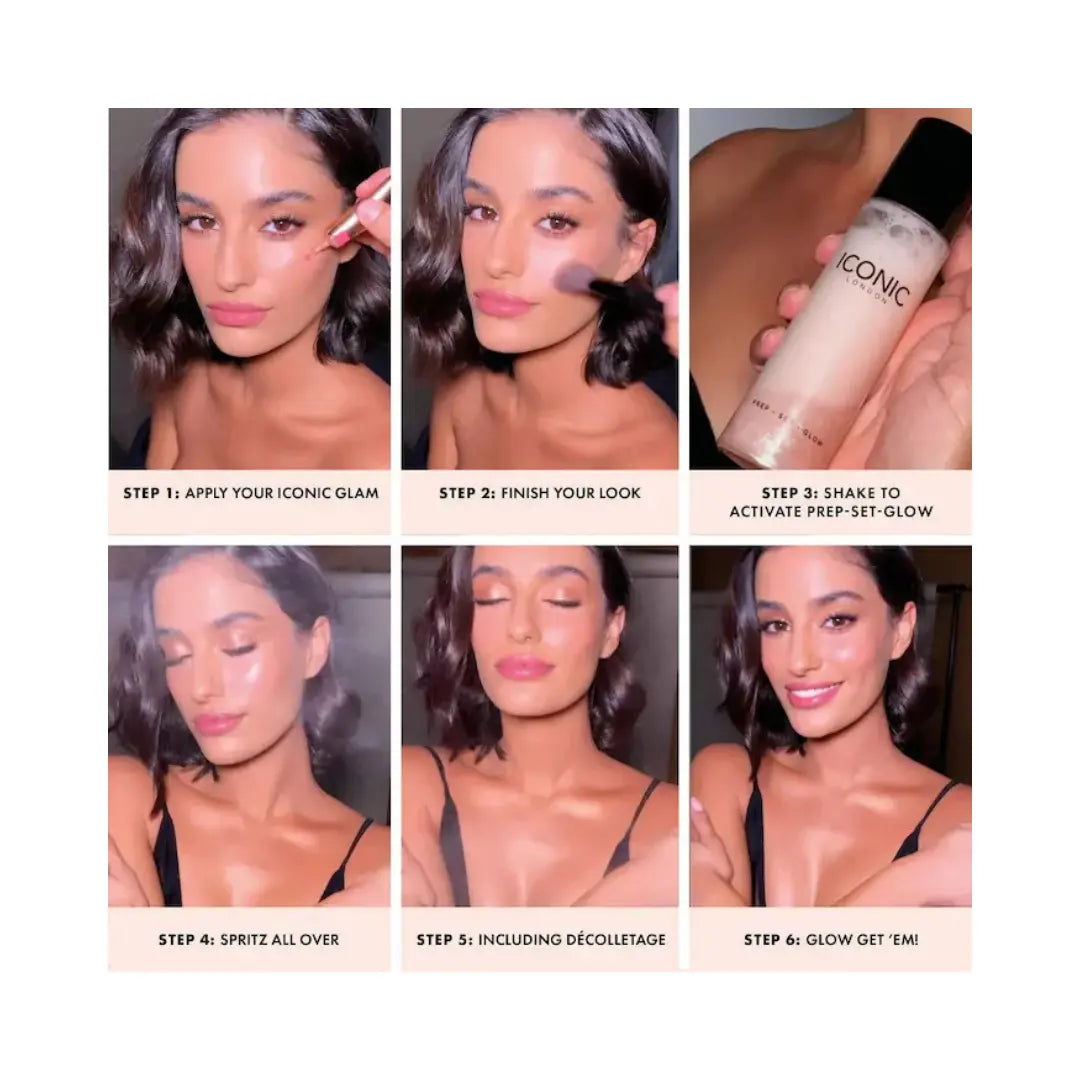 -Mini Size 30 mL Iconic London Mini Prep Set Glow Hydrating Spray in Original (champagne glow)