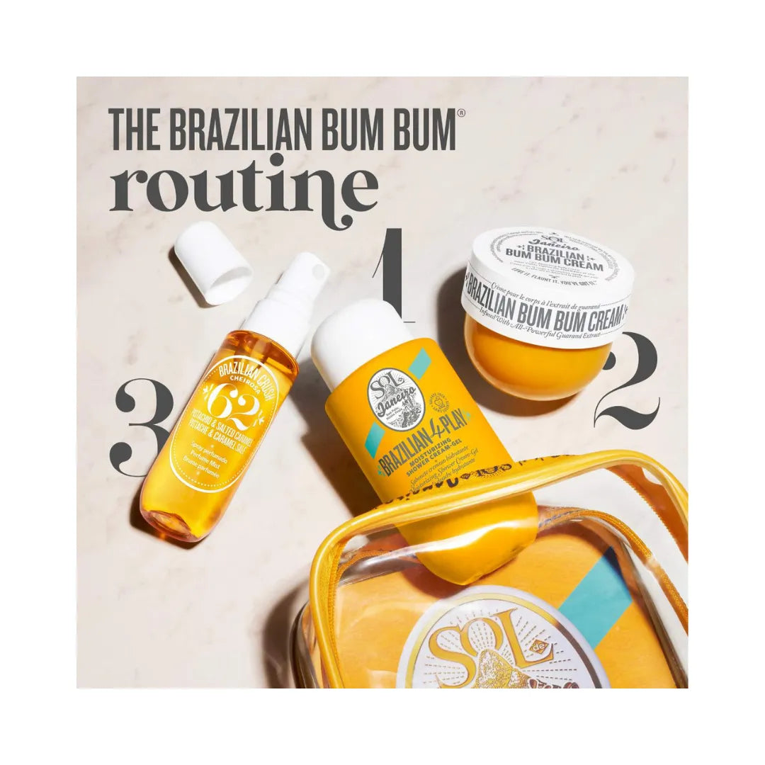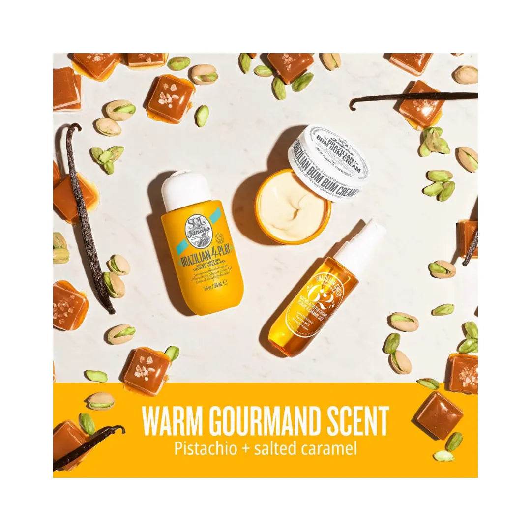 These best-loved, travel-friendly minis include the iconic Brazilian Bum Bum Cream, Brazilian 4 Play Shower Cream-Gel, and Brazilian Crush Body Fragrance Mist for a head-to-toe fragrance blended with addictive notes of pistachio and salted caramel. This set helps keep you bodylicious, irresistible, and all set to fly. Bum Bum lovers know that layering this trio results in addictively soft-feeling skin and an even more irresistible fragrance. Experience the cult-fave scent from head-to-toe.