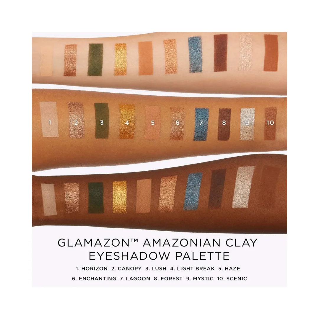 This earth-toned eyeshadow palette features everyday go-to shades and pops of color. The 10 new shadows include two XL pans so you never run out of fan-favorite shades. The shades are Amazon clay-infused for one-swipe pigment looks that last all day. The sleek, modernized compact also opens flat for easy use and transport.
