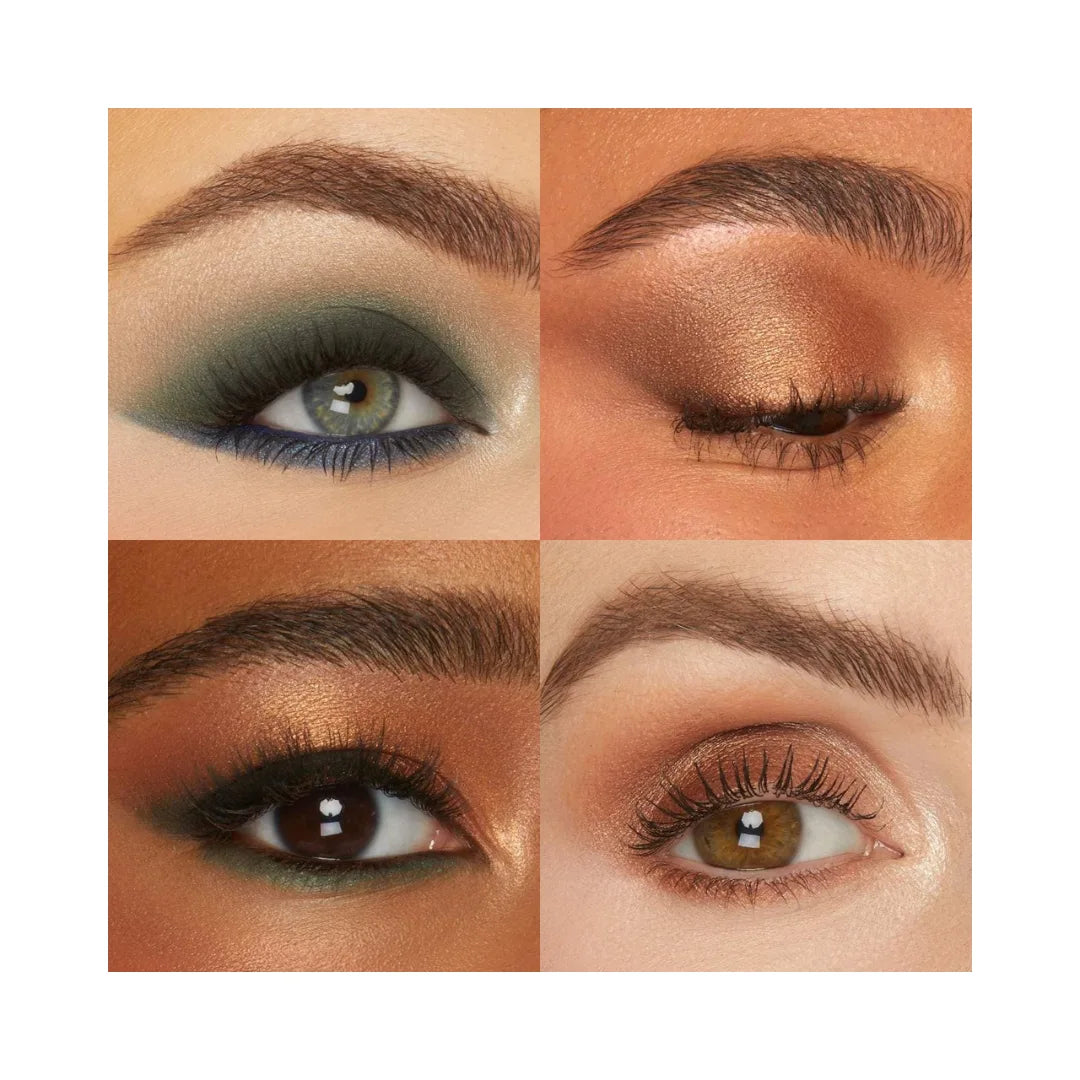 - 10 x Eyeshadows in Horizon (matte soft peach), Canopy (deep bronze shimmer), Lush (matte forest green), Light Break (amber shimmer), Haze (matte tan), Enchanting (copper shimmer), Forest (matte deep brown), Mystic (pearl shimmer), Scenic (matte light brown), Lagoon (blue luster)