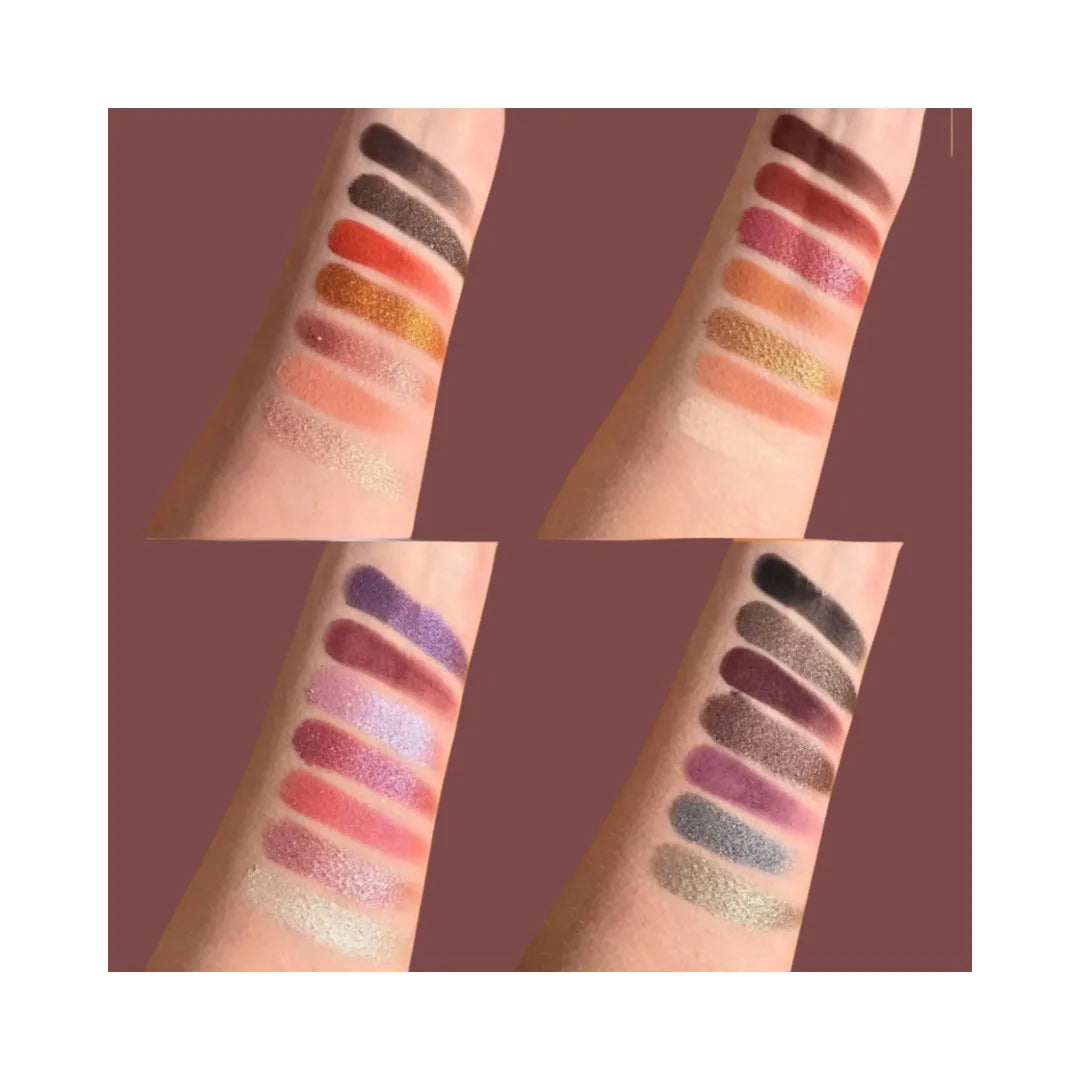 -10 shimmers, 12 mattes, 3 glitters, and 3 satins.