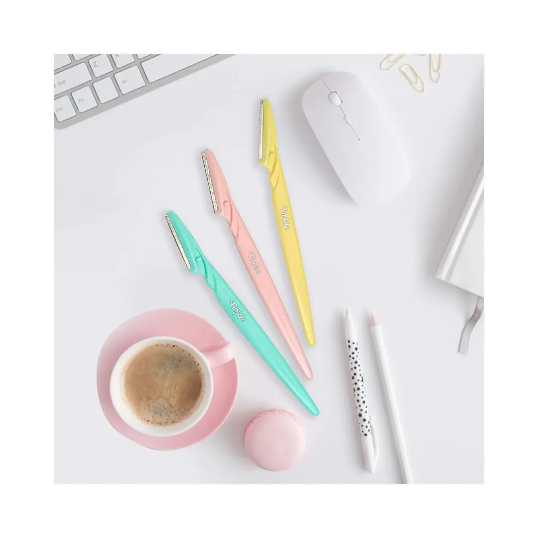 -Tinkle Eyebrow Razor has a safety cover attached to each blade to protect a woman's sensitive skin to prevent the blade from cutting too loosely while shaving.