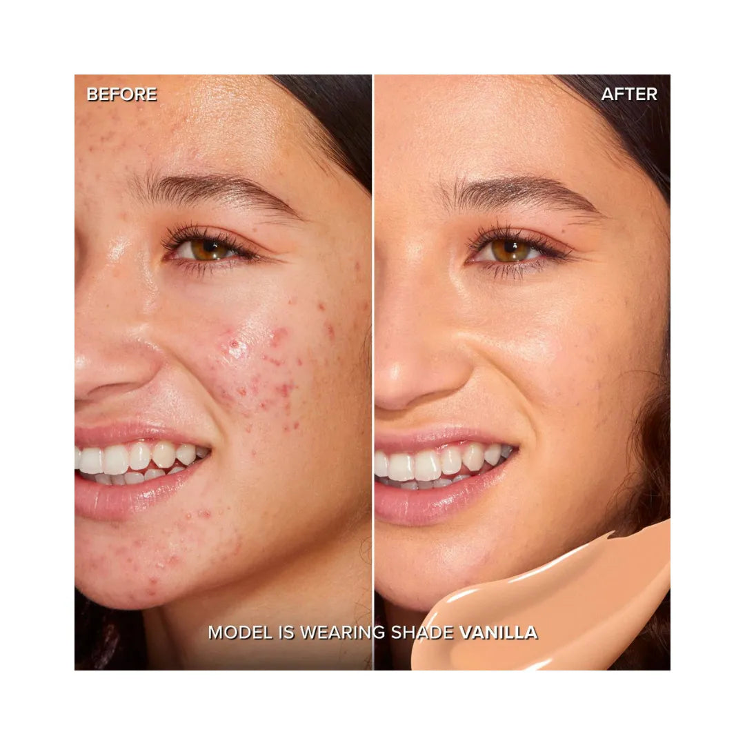 -Apply a dot of concealer under eyes or over hyperpigmentation—wherever you need extra —and tap with fingers or a sponge until blended to a flawless finish. It even hides tattoos.