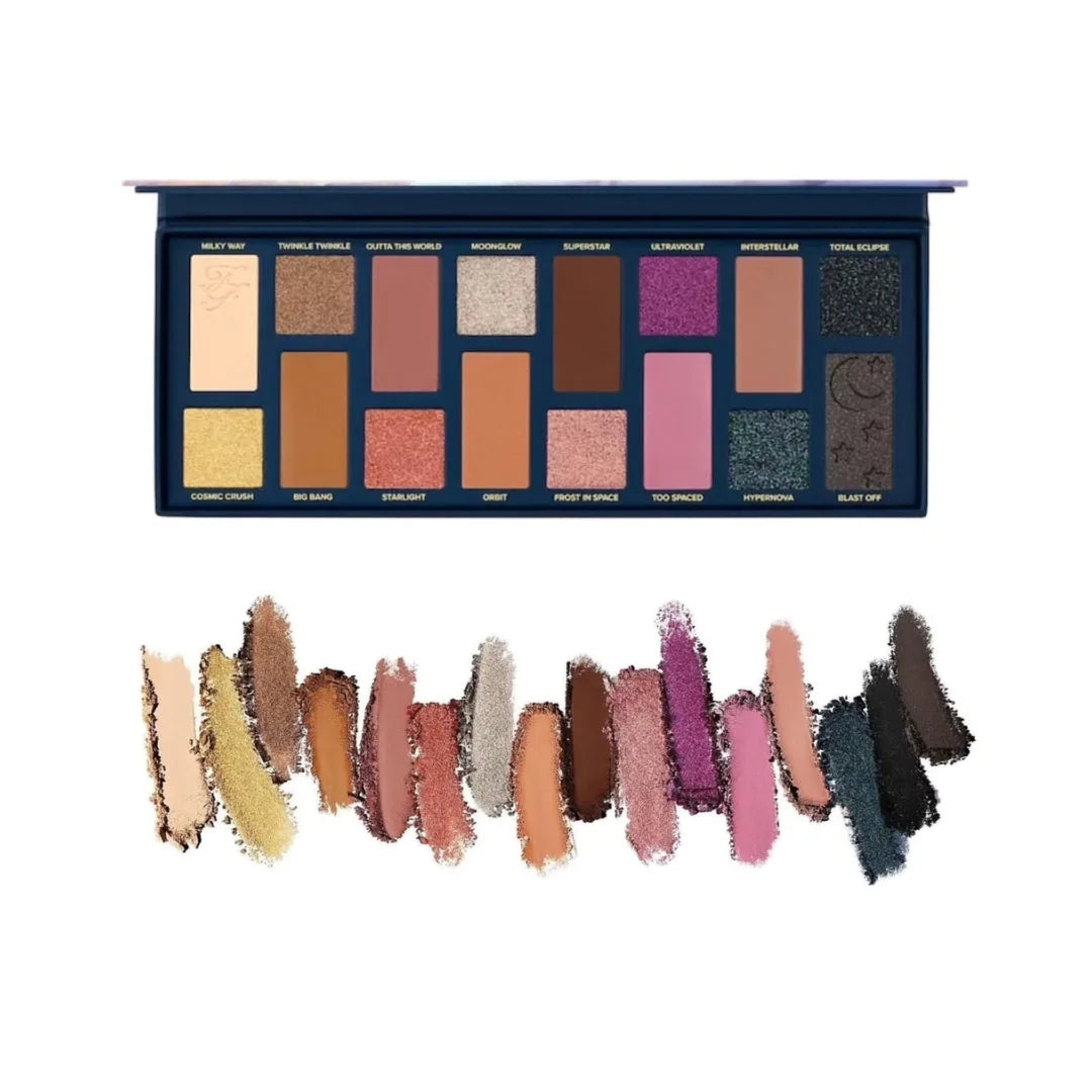 What it is: Add a futuristic twist to your eyeshadow looks with the Too Faced Cosmic Crush Out Of This World Eyeshadow Palette. In this palette you’ll find 16 ultra-modern cream, gold, brown, mauve, pink, silver, purple, green, and black-hued eyeshadow shades, scented with sparkling apple that are cider, that offer an effortless blend and one-swipe pigment payoff. With a selection of matte, shimmer, shifting, and metallic finishes in creamy pressed powder textures, this palette is essential for creating futuristic eyeshadow looks that are out of this world.